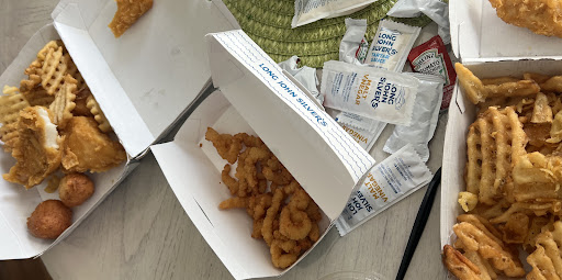 Read moreThe inside of this Long John Silvers is filthy. The entire inside needs a major renovation. The service was okay; however, all young guys behind the counter. After I placed my order I sat in one of the booths to wait for my to go order, and witnessed the guy who waited on me tell his coworker that he has a pimple on his cheek and needed to pop it. Unfortunately the coworker took his advice and popped the pimple right there in the kitchen. How nasty is that? Thankfully he washed his hands, but still who wants to see that when you’re getting ready to eat! The food wasn’t much better. I ordered a three piece fish meal with fries and green beans. Instead I got three piece chicken meal. The chicken and hush puppies were soaked with grease and cold. I also ordered two grilled salmon tacos and they were also cold. The entire meal was just nasty. I won’t be returning to this location...