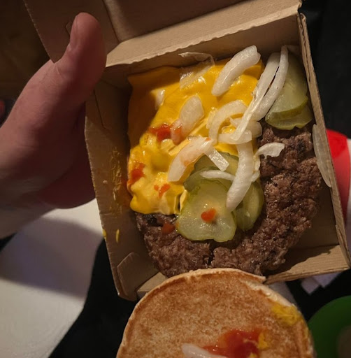 Order placed, cheese burger kids meal only ketchup and onion, extra fries, sprite for the drink, Number 7,large, both cheese burgers plain, sprite for the drink, and an extra large fry. So a small drink, a large drink, 3 cheese burgers with less than regular toppings, 2 large and a small fry.