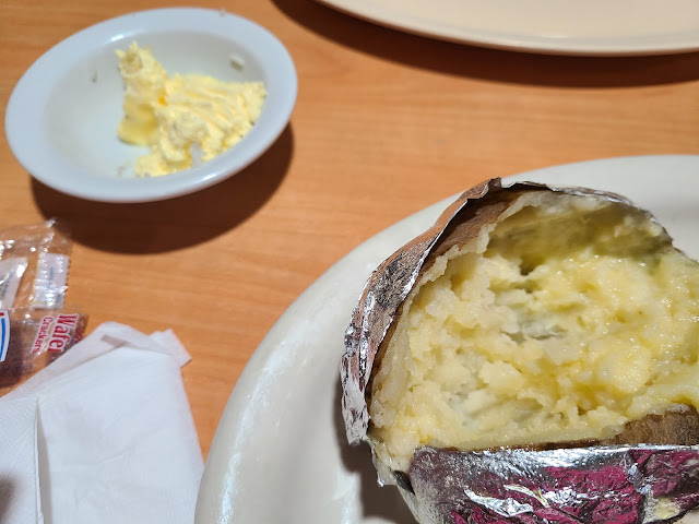Read moreI ordered salad dresing on the side my salad had dreasing on it and too much dressing for me. I asked if the steak was thin or thick our server said thick. I ordered a tbone medium and receieved a very thin tbone well done. I ordered a baked potato with just butter my potato was swimming in butter. I sent my meal back, and my husband was done with his meal and I still don't have mine.Our server had to come back and insisted that she ordered my steak medium. I don't really care I just want what I ordered, except my thick steak. We will not be back. For what I received the steak was very over priced. Please don't tell me you ordered my food correctly, I don't care who caused the over done steak, i just want one the way I asked it to be cooked.This is the corrected steak, still not what I would consider thick, and not something I would normal pay 29.00 for. The bowl is the butter I took off of my potato and my potato still had more than enough...