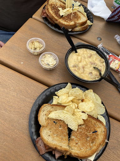 Read moreThis place kind of caught us off guard as we didn’t realize it was part of the gas station complex they own. But SO glad we tried it out. Had seen it recommended on Daytripper. We each ordered a Reuben sandwich. It came with chips. We also tried the potato and ham soup - best we’ve ever had!! They had the most delicious small crackers they served with it - ranch flavored but with a little kick from red pepper flakes. A Texas thing I guess & yummy. The sandwiches were delicious! Tender meat, great bread made there. To cap it off, we tried a piece of their pie. Chocolate cream with meringue. Yum!!! (Forgot to get a pic we ate it so quick lol). Don’t be afraid of the gas station vibe - it is well worth a stop! Plenty of goodies to take home too: breads, kolaches, noodles & more. Nice outdoor...