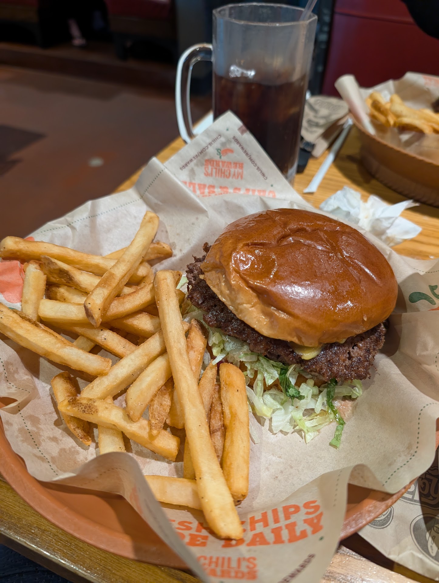 Read moreFirst off came in with a party of three was told there was going to be a wait when I saw multiple tables available. They sit everyone together and when told to ask to move they refused. Out of flour and no mashed or loaded potatoes because someone didn't place an order on time I'm assuming and just the whole vibe was off...never have I been handed my plates instead of them being placed on the table never had a waitress placed drinks on ourntable and we are the ones supposed to grab them and sort them...never have I seen a waiter who is wearing a mask for his and our health spay disinfectant on tables to clean and wipe while with the same hands bringing us food and napkins . My sister asked for pickles on the side and they couldn't get that right and mind you if you don't like pickles you know they soak into the burger and bun so c'mon. Last but not least I swear after being told we couldn't sit on a certain side of the booth mind you that a VIP guest could only sit in since they allowed her (must have been a GF/Family/or team member) and going to the kitchen for a side of ranch and refill since no one was in sight (I was waiting trust me my neck hurts from looking back lol) I was fed up with this location!! OH AND THE CHILI WAS PACKED WITH ENOUGH SALT FOR THE WEEK!! I asked for the check lol they pointed me to the kiosk on the table lol I've been offered that before at chilis but as an option at this location they made it seem like they didn't or couldn't operate a register sheesh how could I tell someone about my experience where's the whole how are things? How was the food? No once checked on US I believe I saw someone in what seems to be a manager shirt but he just had air pods in listening to music while he swept where no one was sitting for the past hour mind you my feet were sticking to the ground because of spills or something extremely sticky...get it together everyone this location needs...