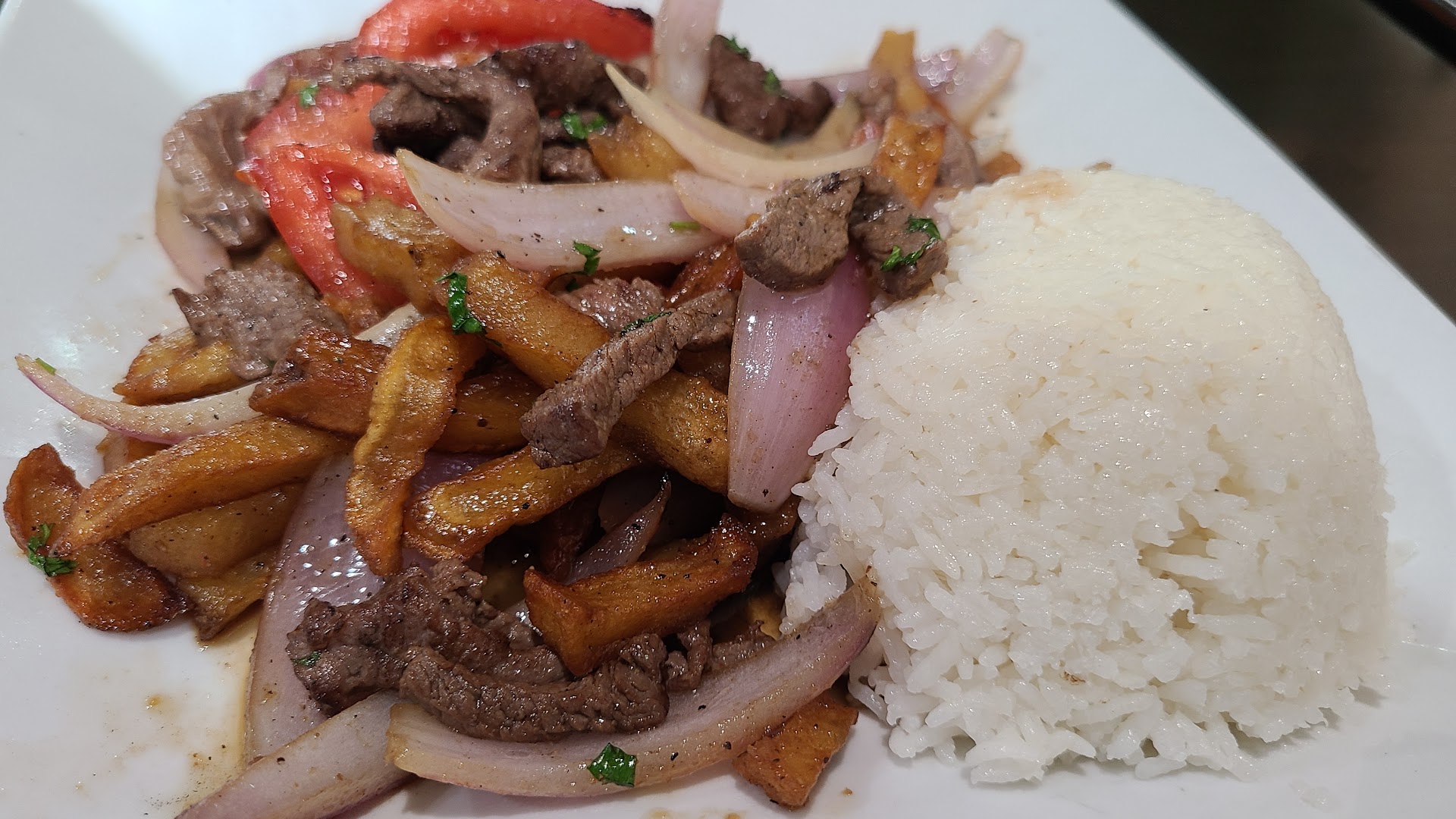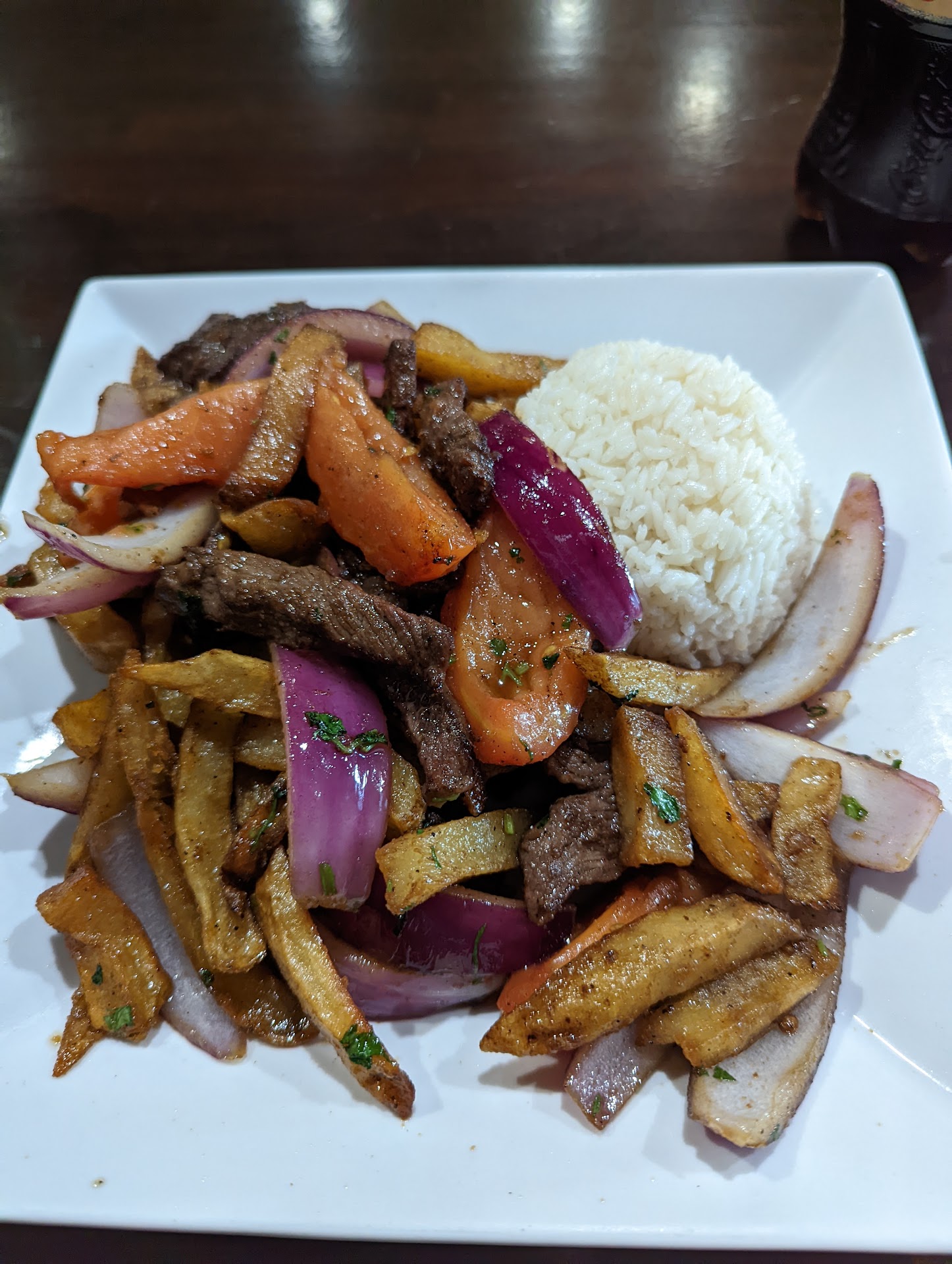 I ordered the Loma Saltado. Pros: rice seasoned beautifully, side sauce is wonderfully spicy. The beef had great flavor and the portion size is generous, very filling.