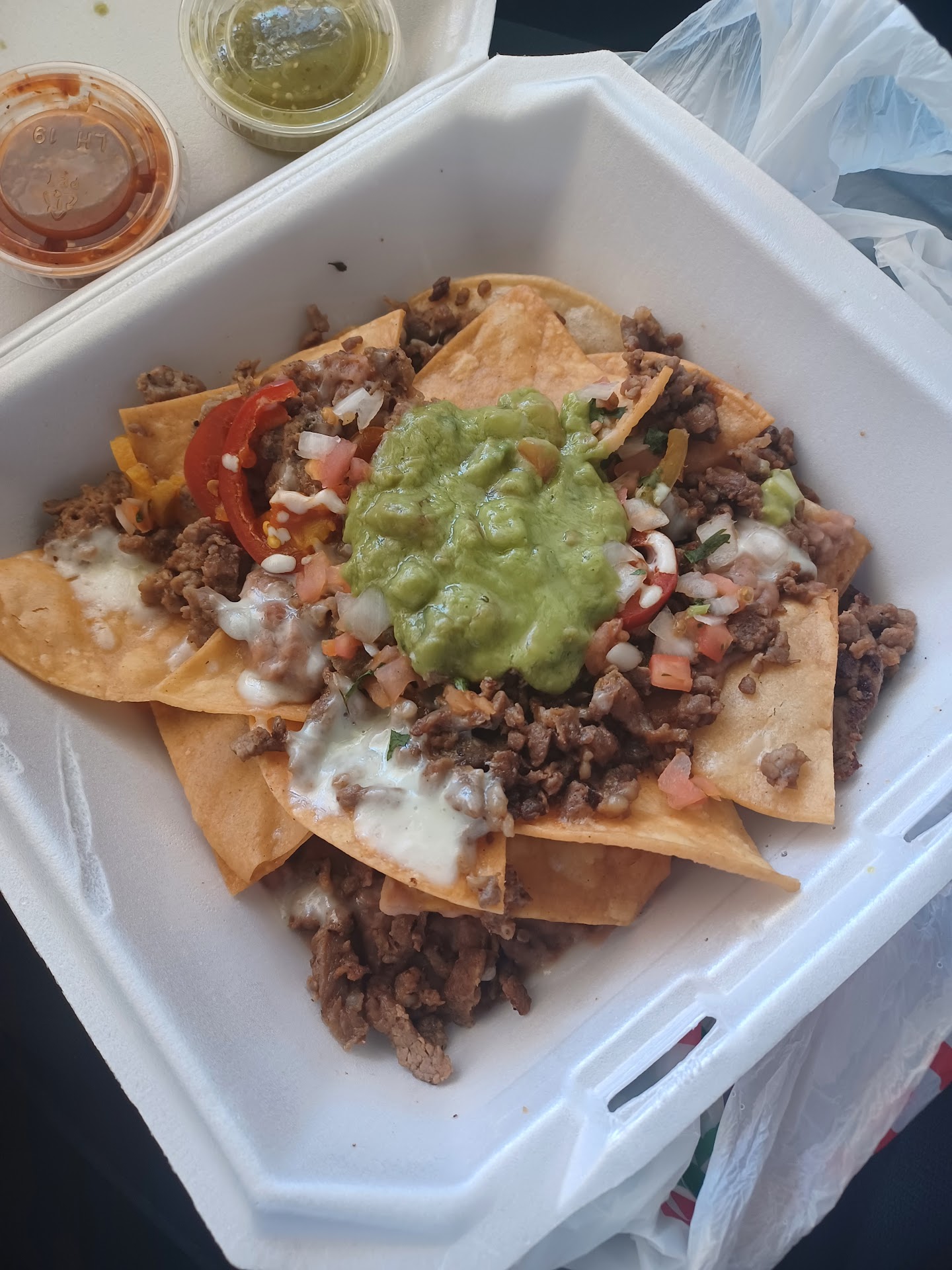 That said will start with the positives. Ordered: Fresh tortilla chips they were fine, tasted great and fresh. Side of beans they also tasted fine. Green & Red salsas were good.