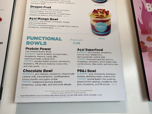 Read moreUpdate for new visit 12/26/22: It was great! Greater than the last time I visited this location. I was helped shortly after entering the store. My order was made quickly after I arrived. I arrived earlier than the quoted time for pick up. My bowl was made perfectly. Base was thick as requested and fruit toppings were filled the best of all my visits to Nekter. I was VERY HAPPY with how my order was fulfilled! It'd be nice if there were more granola First time at this store and ordering on mobile app. Staff member was really nice but a different member who made my bowl didn't give much care to the bowl. My bowl was not filled to the top and omitting one fruit made the bowl look half eaten. It didn't look appetizing but it did taste great. It is sensable to fill the space of the omitted fruit with the other included fruits but that did not happen! It didn't help your mobile app didn't have the option during customization. Unfortunately, it looked worse than it tasted! I asked the nice team member how I can customize via online order in the app but she didn't have much to offer except to suggest calling in after placing order or ordering in store so it could get done exactly as preferred. Some options in mobile app were not available and no free form box to add additional notes. I definitely like La Habra store over another store I've tried with a friend in regards to the consistency of the base filling blend. I hope it is better next time and the mobile app will have flexibility in customization feature so I would not have to do...