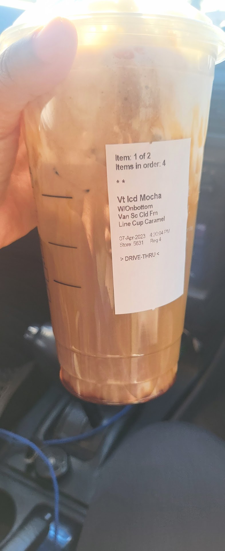Read moreConsistently disappointed by the customer service at this location. I've been to this location a handful of times, but try to go to other locations when I'm able to as it seems that every other time go there I have an issue with the staff. I don't expect folks to give me Disney quality customer service, but I do appreciate at least a minimal effort to be cordial. In the past I've had the "what do you want/is that it" type of interaction which is a bit annoying but necessarily unforgiveable. However, on one occassion they made a mistake on a drink I'd ordered, (iced caramel macchiato, they forgot to add the coffee so it was just caramel and iced milk) so, within 5 min, my boyfriend went in to ask for the correct drink, and instead the cashier accused him of tampering with the drink, demanded his receipt, and, when the manager finally gave permission for the order to be corrected, they had my boyfriend return the iced caramel milk, (which I suppose isn't so bad as it didn't much appeal to us anyhow) but it was still really frustrating for him. This evening I was picking up an order for my boyfriend's sister, (she had placed as an online pickup) for a treat for she and the other gals working the late shift, and since they had a pretty long line for the drive-thru, I opted to just get down to retrieve the order. However, once I had tried both doors to the shop, I found that they had closed the lobby nearly half an hour early, (the hours posted on the door state that they're open until 9pm and I'd parked at 8:38pm). So, eventually, after I knocked on the door for a few minutes, one of the folks finally acknowlged me and informed me that they had closed. I informed her that I was simply picking up an order, to which she responded that I would need to go through the drive-thru to retreive, (which was a tad annoying but not such a big deal), but what had really frustrated me was the second gal who ended up handing me the order at the window because she met me with, "sorry about that but we close soon and you JUST got here," I just say, "thanks" and head over to drop off the order only to find that one of the drinks wasn't made correctly and another was filled quite low.