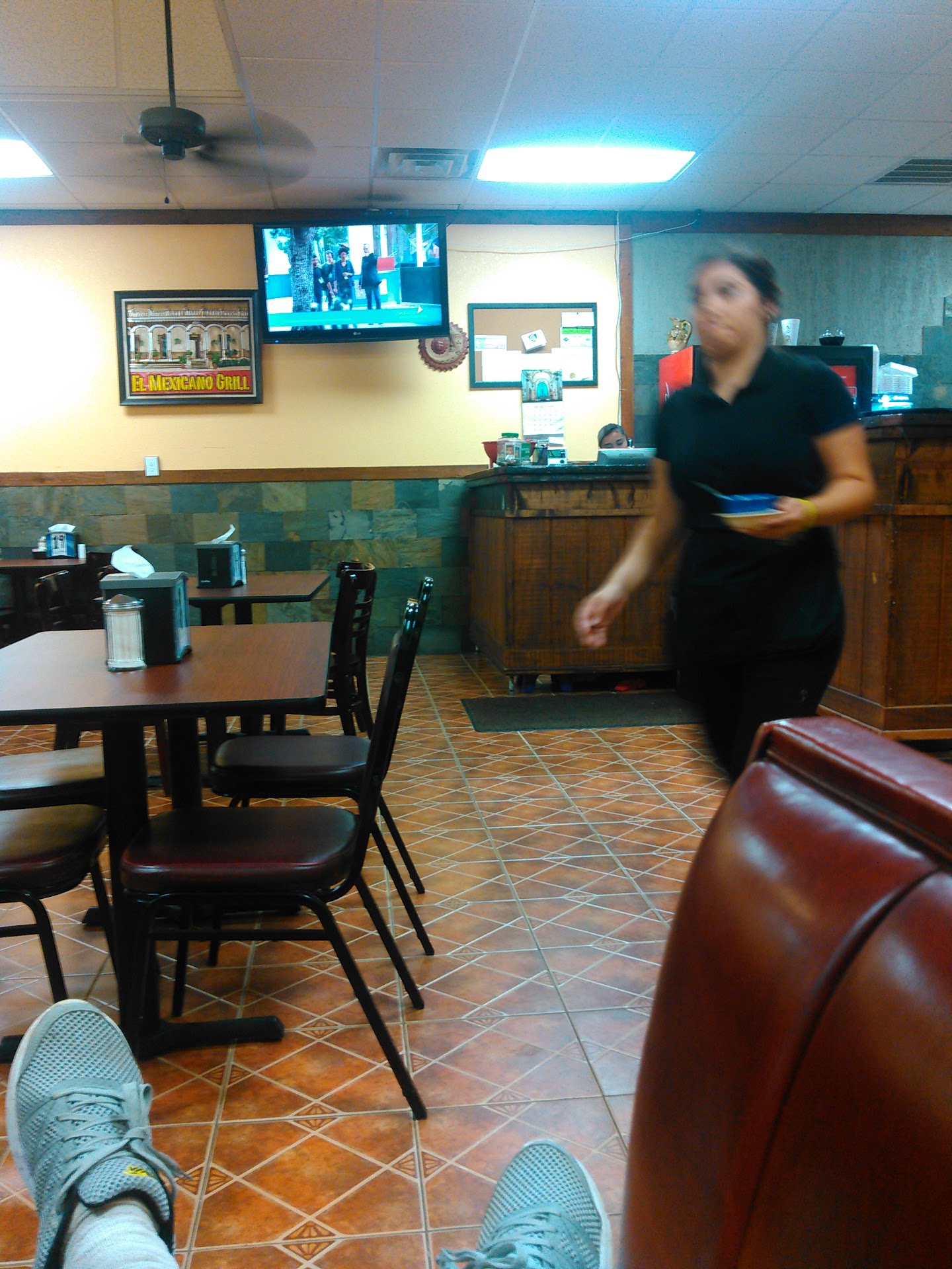 Service was good 👍 5 stars Atmosphere bland 2 tvs on news .. maybe have a little music play in the background to wake up the place, restroom are very clean, tables need to be wipe down a little better.