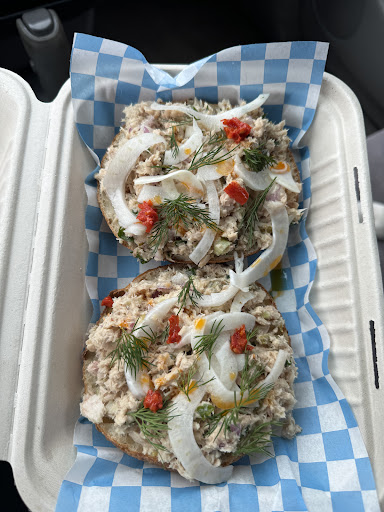 Read moreWe tried the tuna and salmon bagel. The tuna was perfectly balanced with bits of Fennell, dill and Calabrese chillies on a hand made bagel. The Salmon had lemon zest with pickled onions. The cook definitely knew how to balance the flavors perfectly! The latte and cappuccino had beautiful art and paired perfectly with the bagels. Wish we had time to order more (the pizza looked devine), but just gives us a reason to come back...