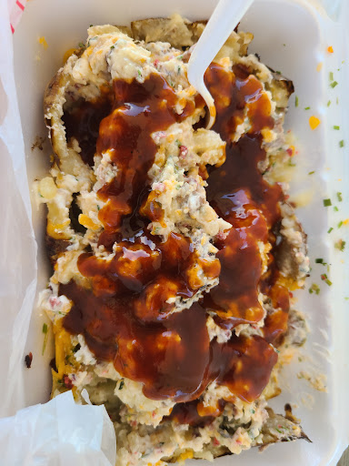 First time trying this place today. I've gotten lots of mixed reviews from several people so we thought what the heck let's give it a shot. I'll start by saying the counter service was excellent. The young lady working was quite pleasant and efficient. Ordered a chopped beef potato a chopped beef sandwich and a small potato salad and it was $34. Now I'm not opposed to paying over priced prices for what I put into my body as long as it's warranted. Well friends not the case here. The sandwich was just alright according to my guy however the potato salad was apparently real good so yay to that. Now the baked potato was old not super old but you can tell when the skin starts to get that papery look feel and texture to it. Also it doesn't hurt that I use to work at a BBQ joint and went to Ai for culinary and I know the hold time on potatoes. Not a big baker potato like most places use I had to sit and spread it all out to make myself feel better about the $16 almost $17 I had just paid for it. The sauce (spicy) has good flavor with a nice kick but just nothing special. And the potato itself wasn't hot outta the oven either. No steam no frills. Needless to say glad I tried it but won't be rushing back. For what I paid without even getting a soda or tea or a beer for that matter there's way better options out there folks. Don't believe the hype. Even Pappas BBQ doesn't charge outlandish prices like that for better quality food. And no extra charges for their 2oz solo cups if you wanted extra whatever on the side. Just not the greatest choice for BBQ in the area. So think twice before spending your hard earned money here. They think alot of their...
