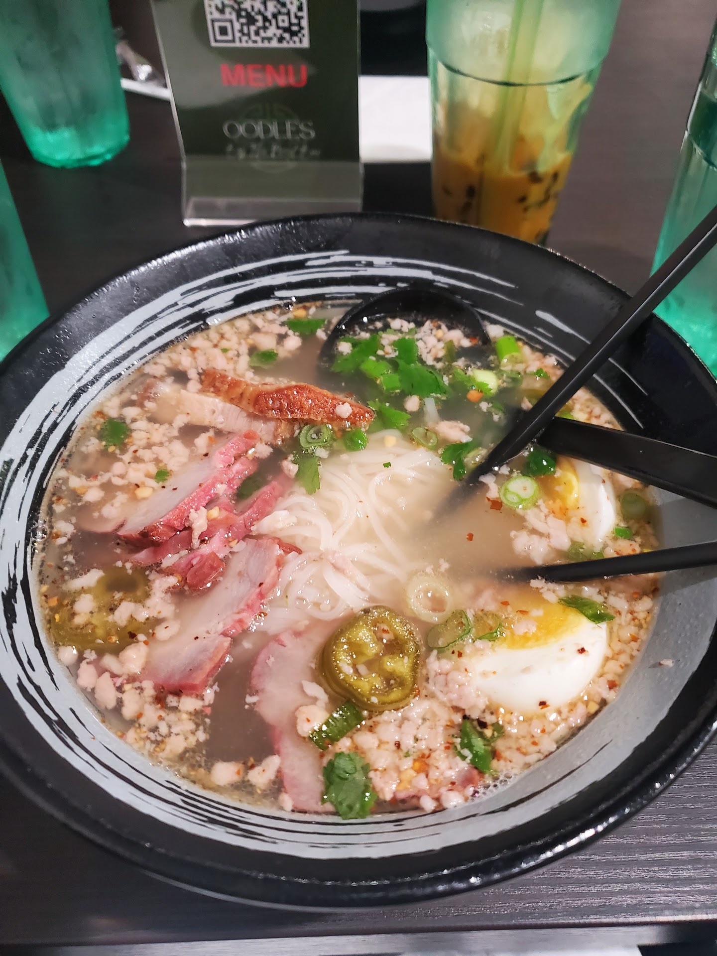 From the moment I stepped in, the aromas wafting from the kitchen had my taste buds doing the happy dance. The menu is a love letter to noodle enthusiasts, with options ranging from classic comforts to bold, adventurous creations. I opted for the Hong Kong Style Noodle Soup , and let me tell you, it was a revelation. The broth was a depth charge of flavor, with just the right amount of heat to leave me breathless. The noodles were cooked to a perfect, springy texture, and the pork belly ... oh, the pork belly! Tender, juicy, and infused with the most amazing marinade. But what truly sets Oodles apart is the attention to detail and care that goes into every single dish. You can taste the love and passion in every bite, and the portion sizes are generous, to say the least. Service was top-notch, too - friendly, attentive, and knowledgeable staff who clearly love what they do. Save room for dessert.. can't go wrong with the Fly Me To The Moon ! In short, Oodles by the Nood Bar is a must-visit destination for any food lover. Don't be fooled by the humble exterior - this place serves up truly exceptional cuisine that will leave you dreaming of noodles for days. Five stars, ten stars, a million stars - I'd give it all the stars in the universe...