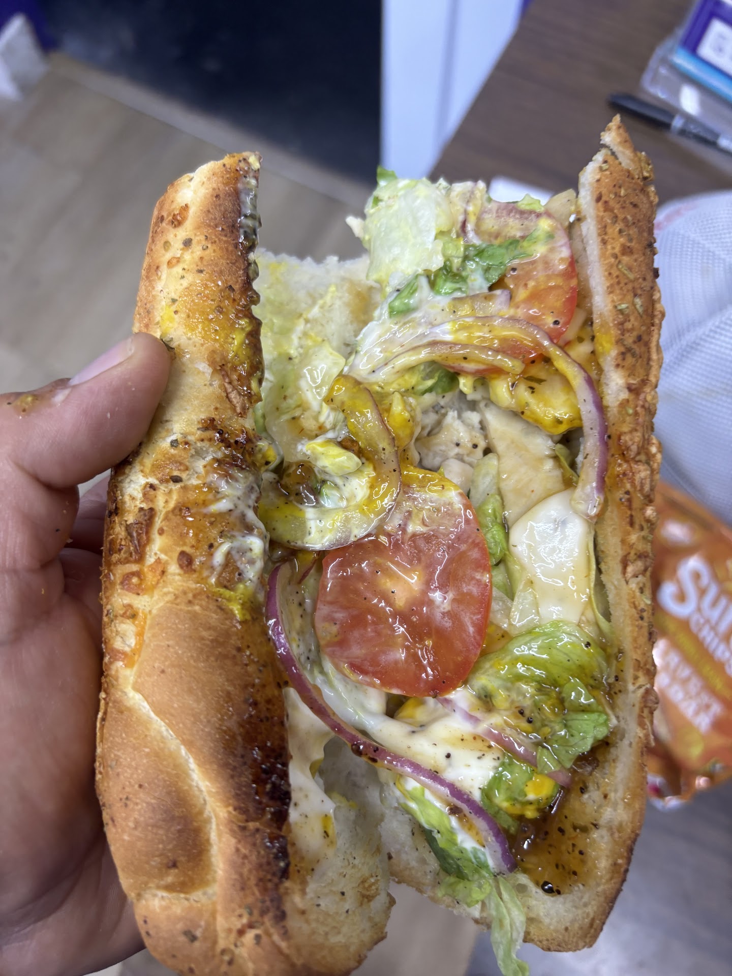 Read moreI wish I had read the reviews before coming here. I ordered double meat, double cheese. As you can see from the pictures, I did not get either of those things! I asked for extra lettuce and pickles when he was making it, to which he told me 'we are limited on how much veggies we can give'. Which is total Bull. I only got two veggies, and it's lettuce and pickles so I like more veggies to compensate for the bread and meat. Awful experience and my food was just as bad. Also the AC was not on or not working, so it was extremely hot. I've never had this experience with any Subway, which I go to multiple times a month for 15+ years in multiple states across the country.