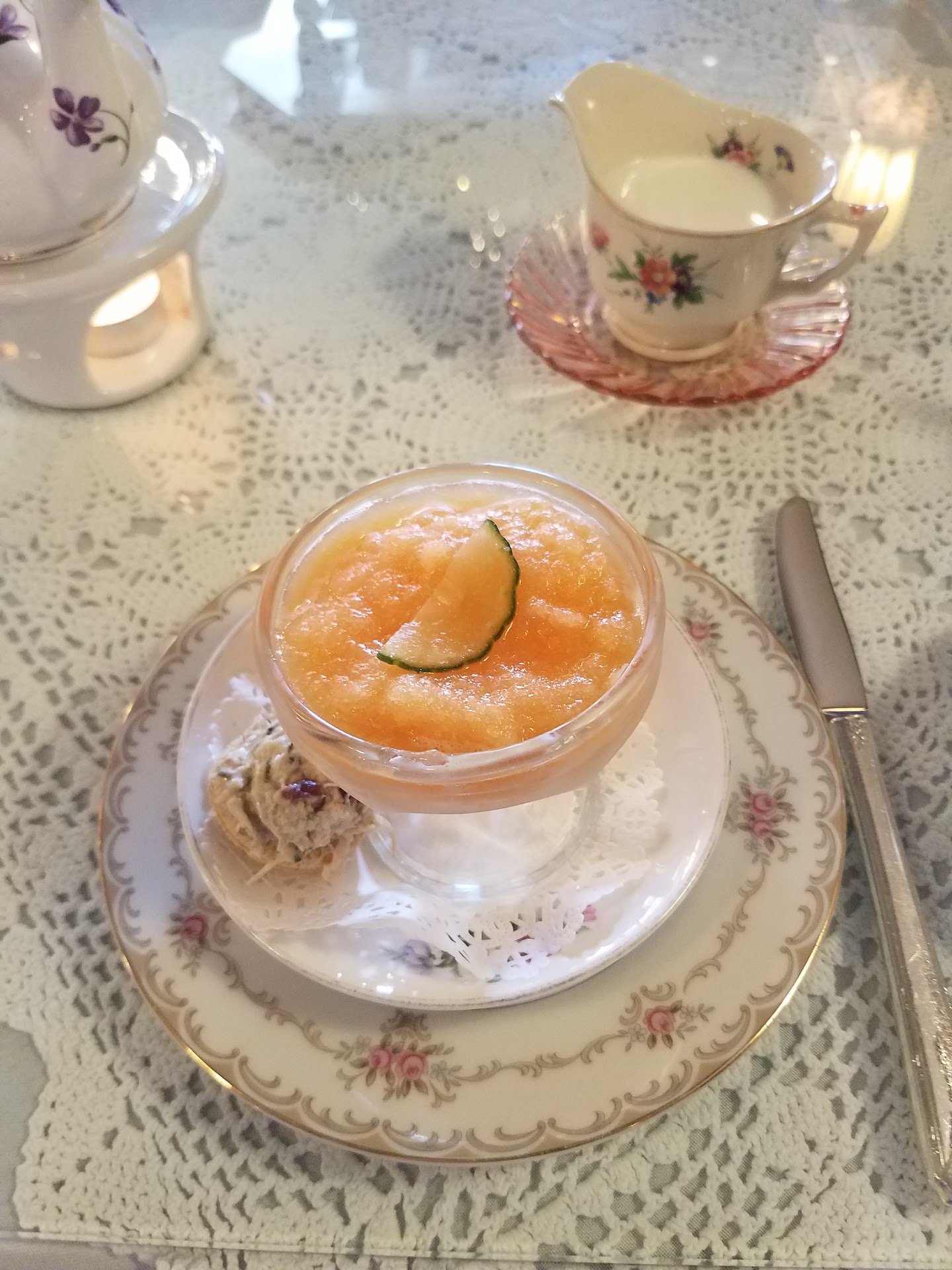 Our starter was a cantaloupe soup that was cold and so so nice. I hate cantaloupe but it was perfect especially since the day was warm. It also came with a tea sandwich that was delicious too.