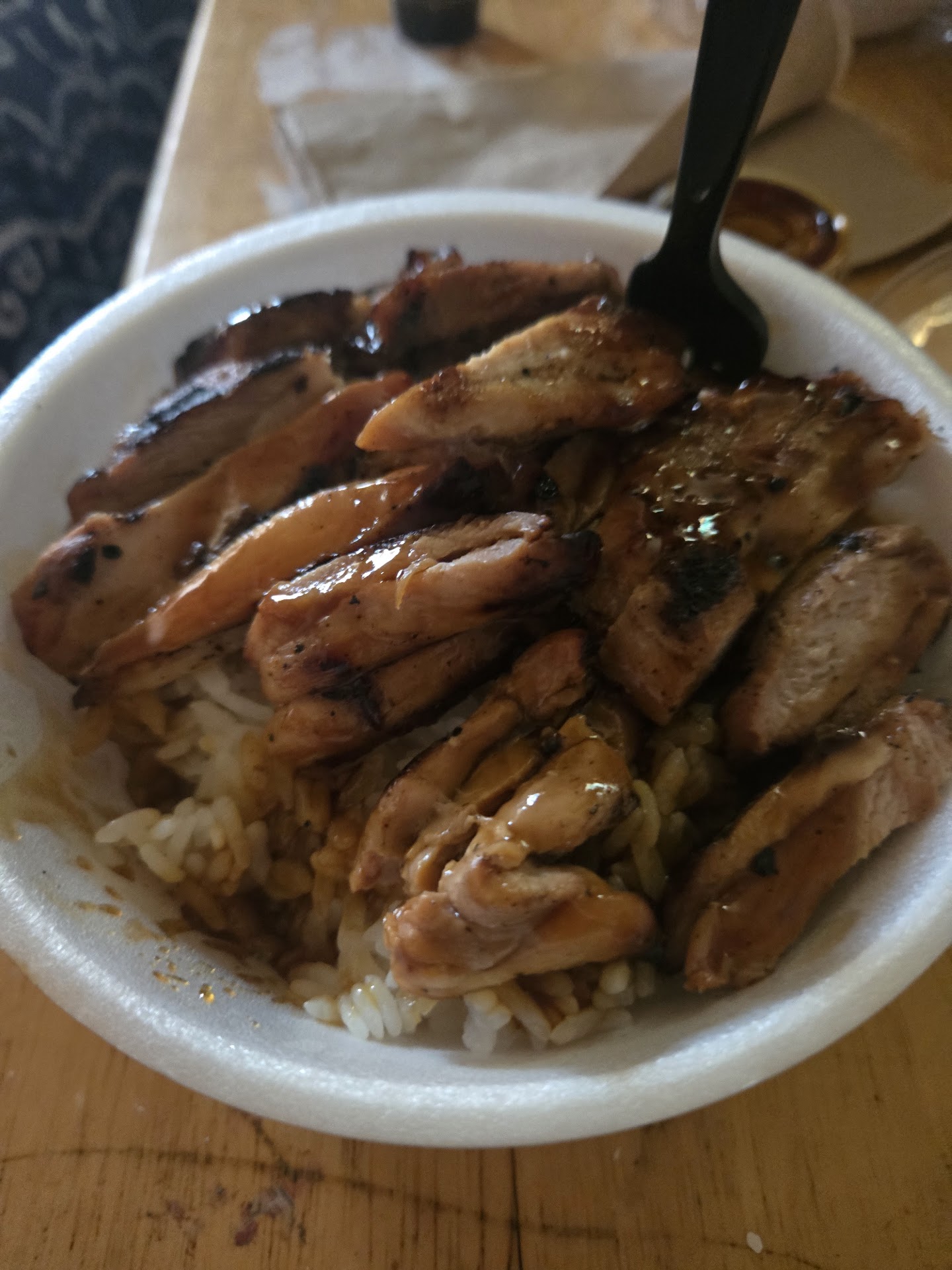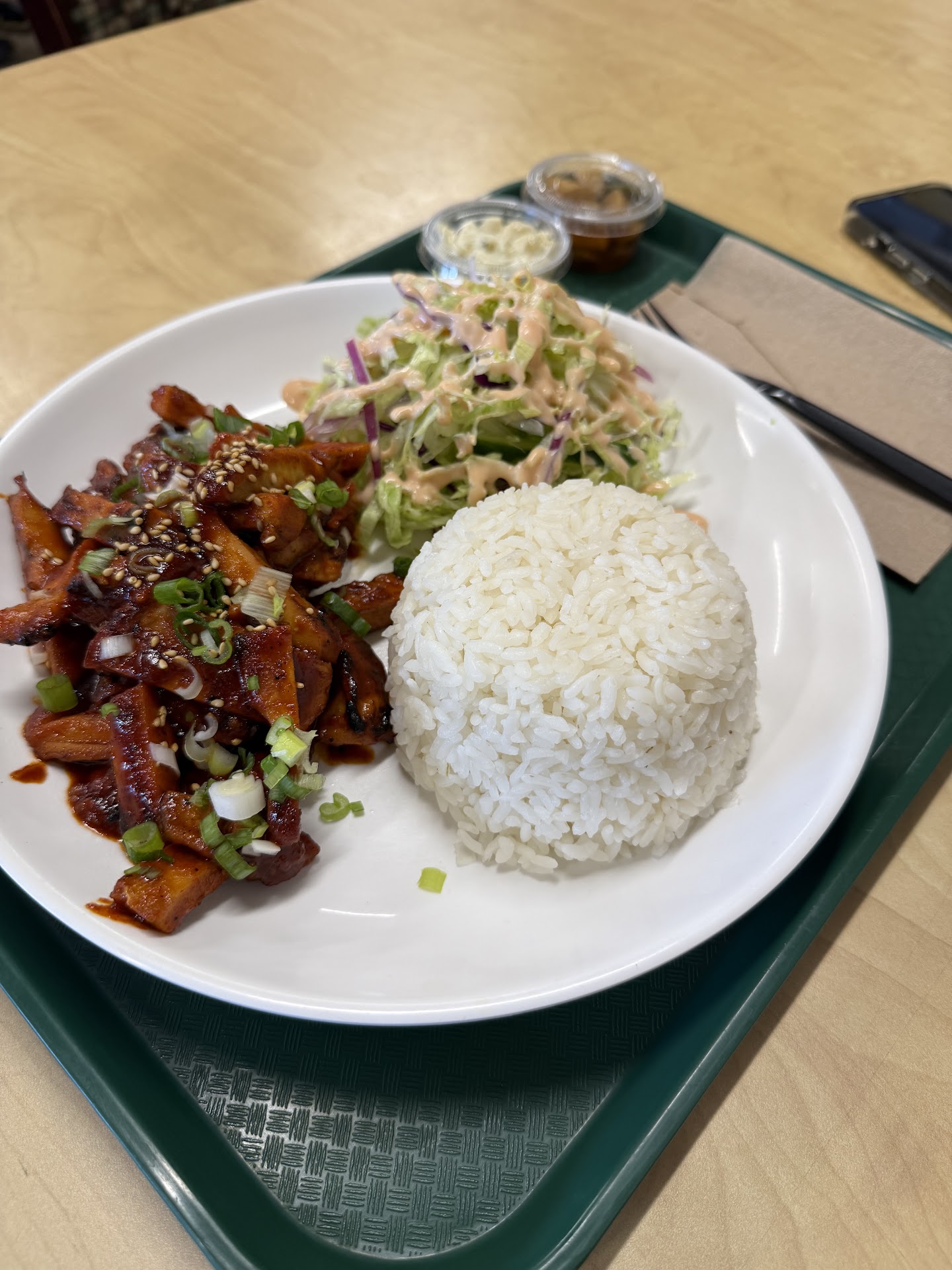 I ordered a spam musubi and the spicy chicken plate.