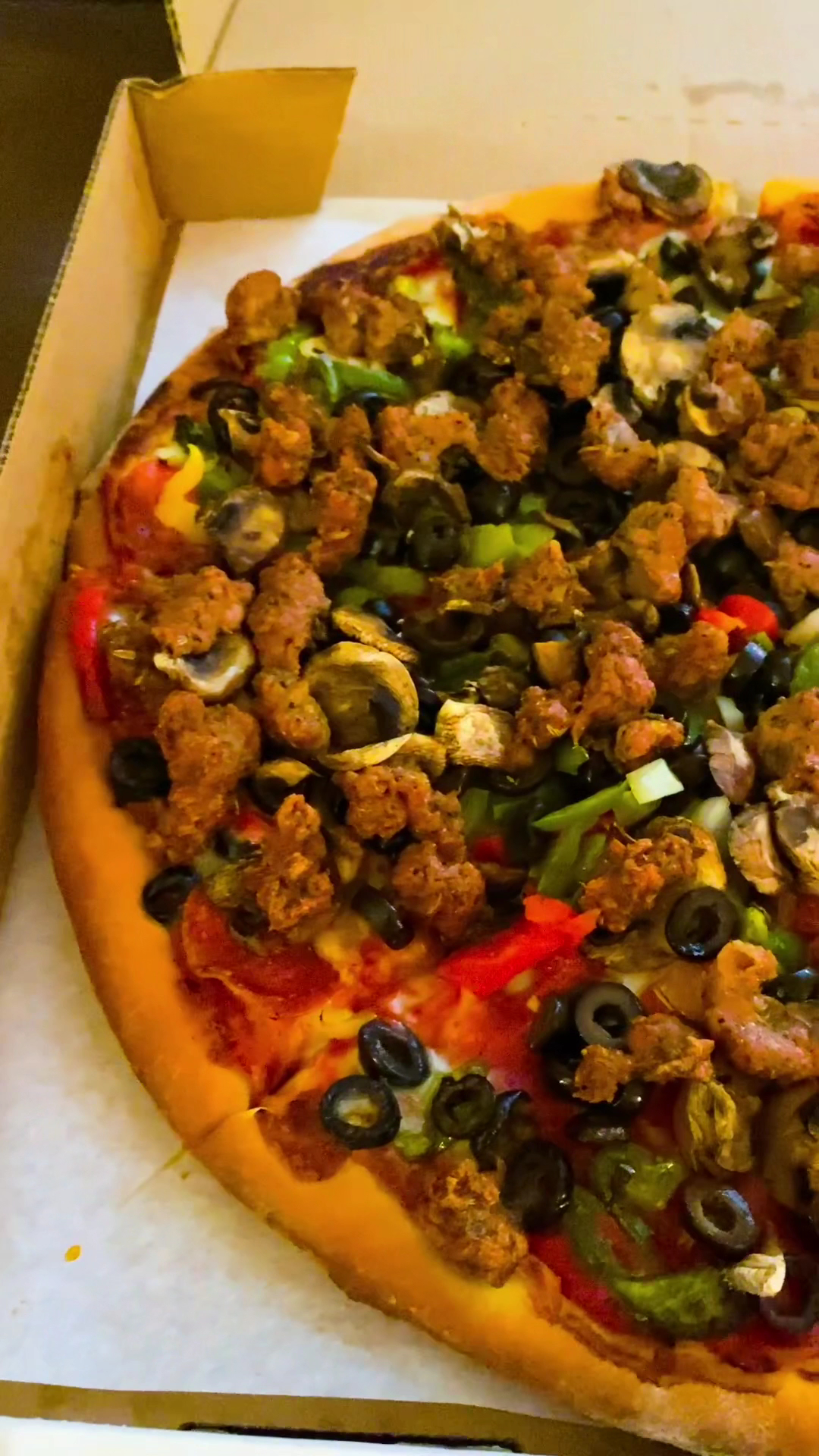 Came by last night after watching Jurassic World and figured we needed something to fill our stomachs after watching Ind. Rex eat all the other dinosaurs! We did carryout and ordered our Large pizza with 3 toppings..Pep,Sausage & Garlic. After looking at other reviews/pictures it seemed to me that there sausage was dominant for a reason and now I know why..the amount of meat ratio is ridiculous for what Id expect in a pizza and its worth the cost prices range from $10-23 depending on the size but its the ingredients they use that justify that cost. Sure I did notice sauce was a little light but I didnt care less considering how heavy the pizza was already from the toppings.