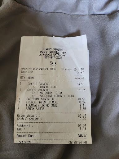 Read moreWas looking for a new place to have Breakfast or Lunch. Since my #1 place J's Grill is closing at the end of Nov 2024. And decided to try Jimmy Burgers . Though I found a new place but when I seen the prices and also getting 70 cents added on my order for using a credit card plus not been told after spending close to $18.00 I will not be back . I did have a double cheese combo and definitely was not impressed by it. Especially for $18.00 plus I asked for no tomatoes but it was on the burger so the order was not right also. Again Jimmy Burger may not be...