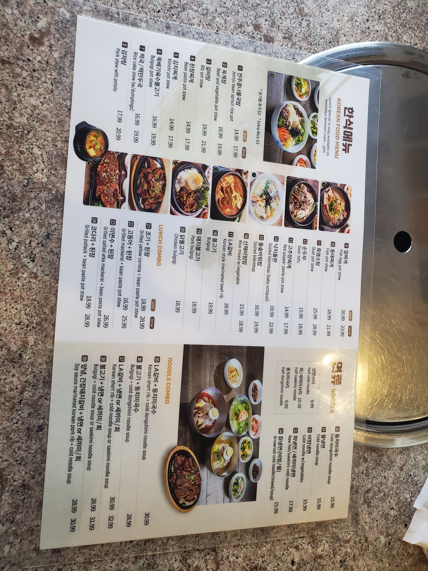Duck roast - I wouldn't recommend this...had to throw away more than half due to the awful meat aroma. I think it wasn't properly frozen causing this smell. Pork belly- This was okay. Pork Jowl - Typical....not great not bad. Salted Pork rib - I would recommend this to anyone who hasn't tried this place. Mulnyengmyun - This wasn't the best but I would repeat for this. Dongchimi Gooksu- This was one of the best I had out of LA and OC area.