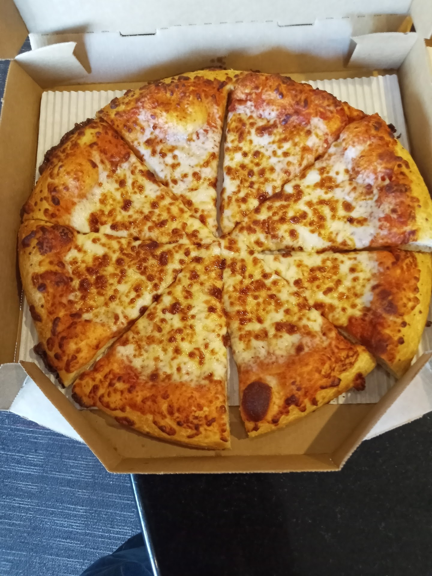 Read moreI ordered two medium cheese pizzas $10.00 each $10.99 and two orders of Mozzarella cheese sticks $5.99 each. I picked up my order and thank God I inspected the pizzas. As you'll see in the photos one pizza looked like it fell apart (maybe dropped, the pieces didn't match and cheese melted on one slice like it was re-heated) and the other one was a little burnt. I showed the employee then asked for the manager. The manager looked at the mangled pizza and said "oh I just came on". I explained I'm showing her so she can find out how a National Pizza chain could mess up a pie like this. We all see video of employees doing unspeakable things to customers food. That what I first thought when I seen the disfigured Pizza. Where has it been. I then asked the Manager to make to new fresh Pizza that are not burned. She said all The cheese pizzas come out like that. She also said if I wanted them not burned they would be under cooked. I said just make the pizzas cooked but not burned. I've included pictures of all four pizzas to let you be the judge. I would make sure you check all your food when coming here to eat. All in all no sorry for wasting my time, no compensate. Again it's...