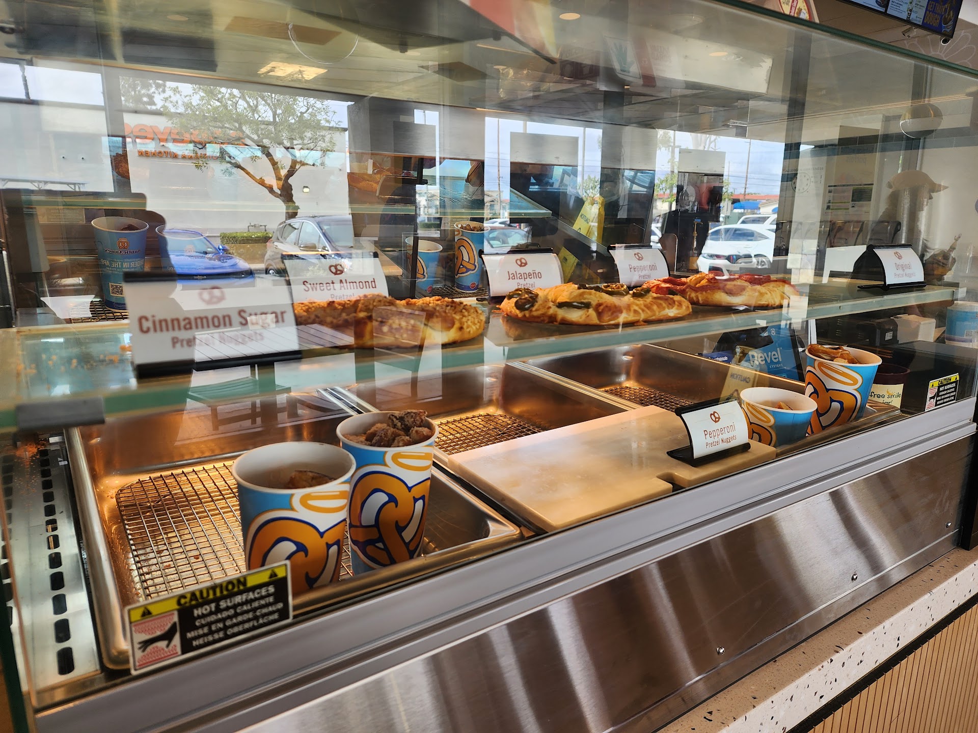 How this store has a single positive review is beyond me. They are horrible in just about every way you can imagine. My main complaint is that they don’t have pretzels ready when they open, which is a truly absurd way to run a business. Why would you not have half the product available until hours after you open? Additionally, the atmosphere is non-existent. The employees regularly seem annoyed you’re there to order. Lastly, every time I’ve gone, my order has been wrong. Once or twice seems acceptable, but every time is out of hand. One time, I was there over an hour because first they made the wrong pretzel, then they dropped the next one on the ground, by the end I did not even care what I got, I just wanted to be done there. There’s no seating inside, so I had to stand there the entire time they continued to make mistakes. The hours online also often don’t match reality, so be sure to...