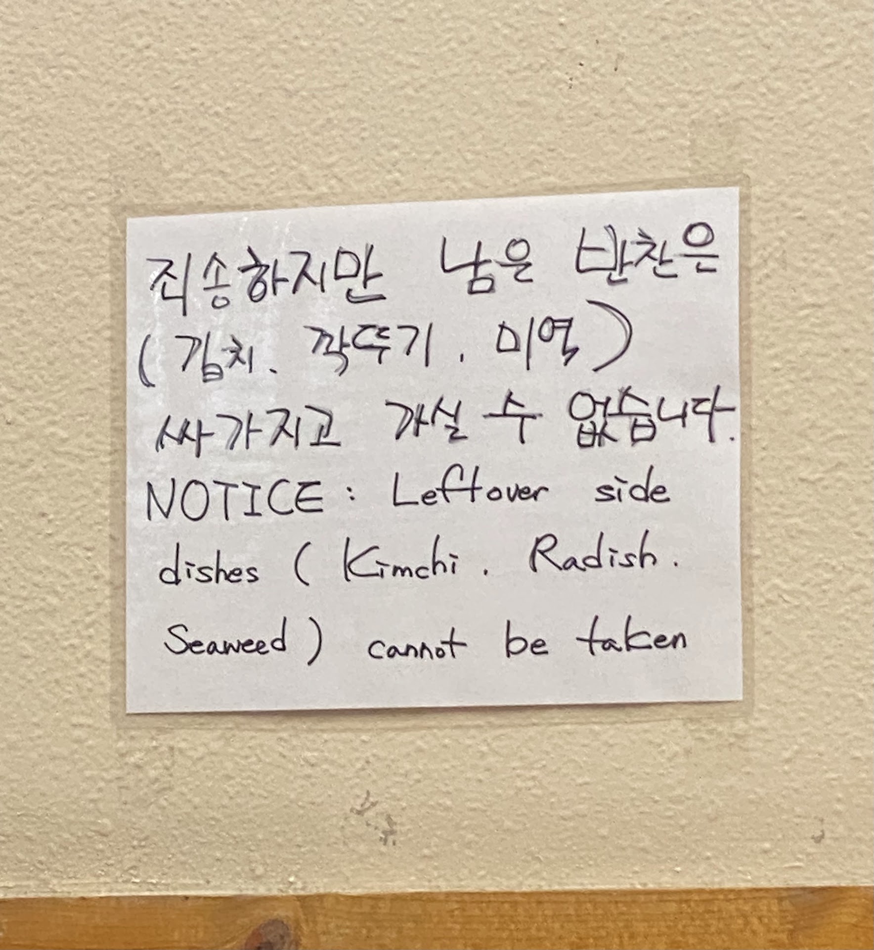 Everything about this mom n pop shop were good. The only 2 cons I had was that they do NOT let you take leftover side dishes (kimchi, radish & seaweed). Not sure why this policy exist but makes me sad that these sides gets thrown to the trash if you do not finish them during your meal there. And the menu had obscured prices so I didn't know how much they cost until they bought out...