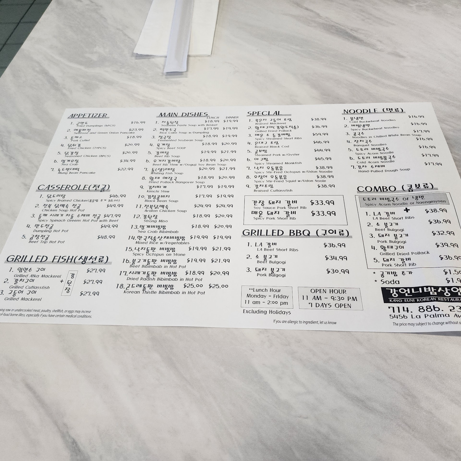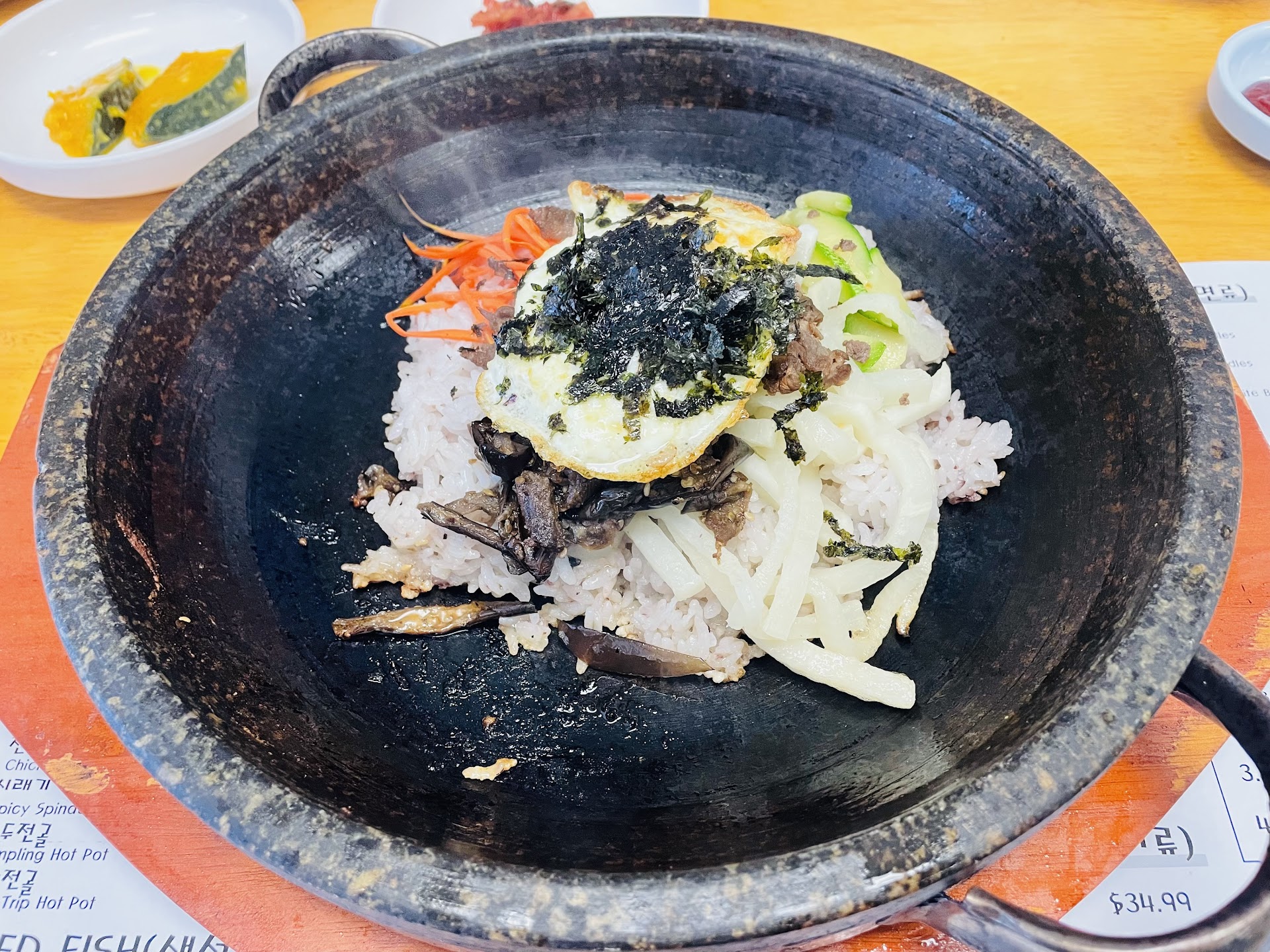 Read moreArrived for dinner close to closing time (the couple who own the restaurant were seated for their own dinner and the few back tables were not cleared). Thankfully the gentleman said we could still get dinner served. Got the octopus bibimbap : hot stone pot, we let the rice and octopus sit to get a nice crisp bottom crust . The galbi tang soup came with a very tender spare rib bone in, plus clear noodles. Broth was a little bit thin. I enjoyed the kulkutsu dish: clear beef broth with thicker flat flour noodles, lots of sliced zucchini squash plus shredded carrots. It was very satisfying even without any meat. This spot used to be a poke bowl spot. Located in the plaza with a Walmart neighborhood store. Friendly people and family owned. Support small Asian...