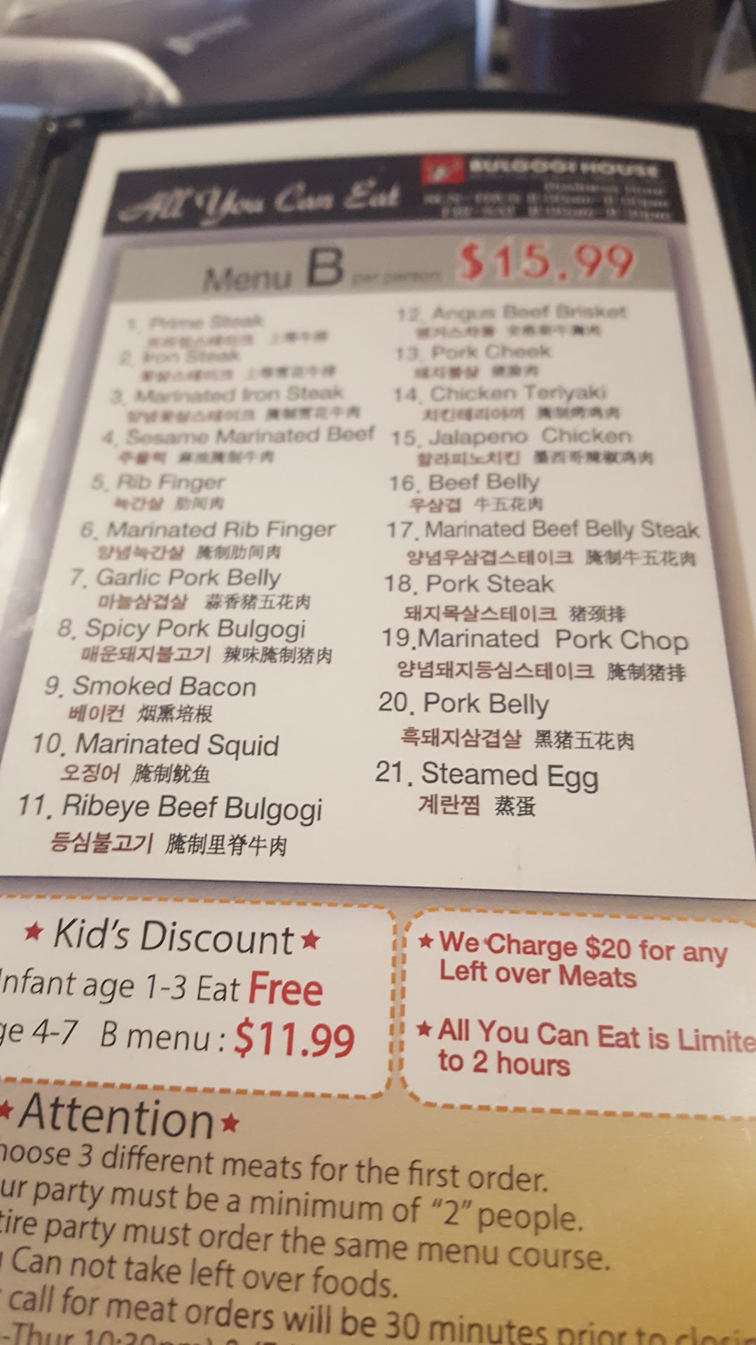 While on the internet, I noticed Bulgogi House was having a Grand Opening Special of $11.99 AYCE, valid all day & including free sodas, during the month of June. While not the $9.99 I loved & adored, $11.99 was still certainly a value for AYCE KBBQ.