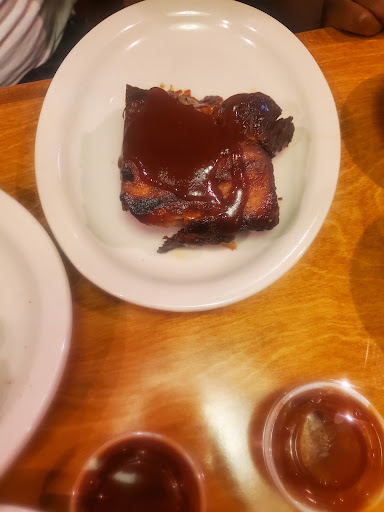 SUPPOSED TO GET A WHOLE RACK OF RIBS, ENDED UP WITH A BURNT HALF RACK AND A 1/4TH OF A RACK. NO BBQ SAUCE.