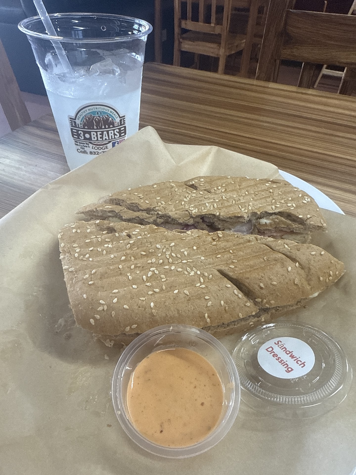 Donāt sleep on this place during lunch yall!! Ordered Take Out. I really really liked the Chipotle Chicken Sandwich!! Had a nice smokey spicy taste that gives it a nice kick. Dipping sauces I choose to pair with it was the jalapeƱo and the chipotle both were good but I favored the chipotle more. Also tried the Baby Bear Turkey and it was kinda mid for me dipping it in the jalapeƱo sauce made it better. Oh and the half Paradise Salad was pretty darn good with the mango dressing! It tasted fresh šš¼ Probably go back to try the little desserts...