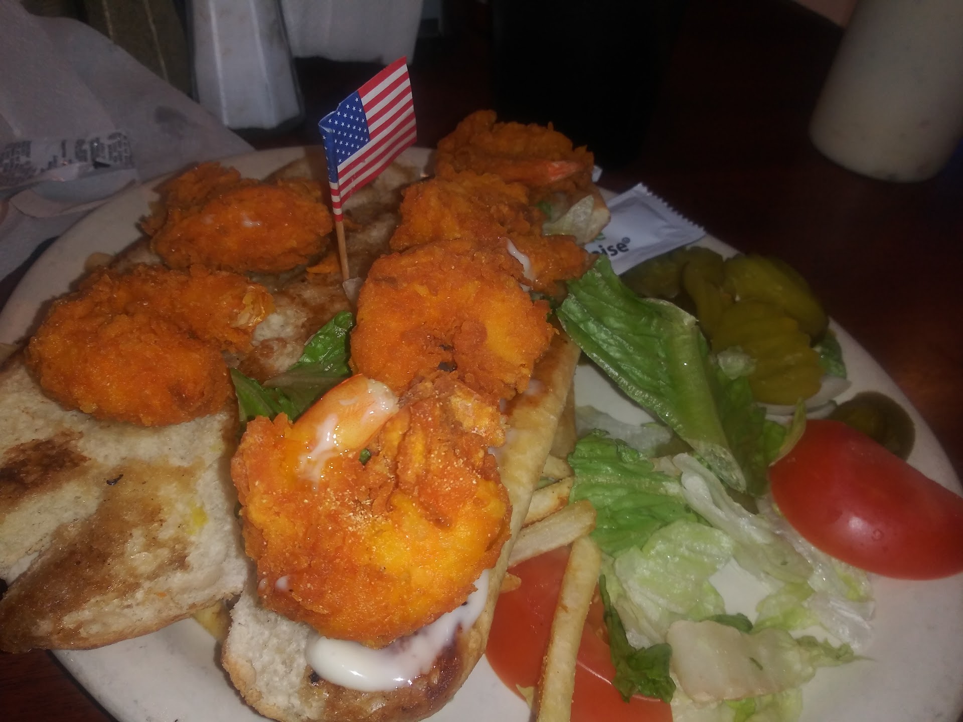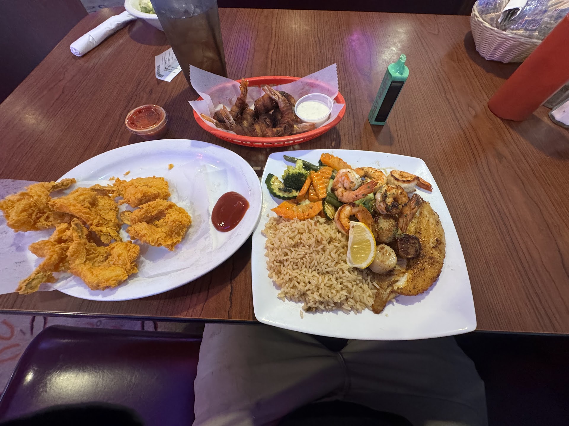Read moreThere really should be a seperate rating system for food and service... I love Baytown Seafood food, and I have always been disapointed by the service. This visit I had iced tea, jumbo shrimp wrapped in bacon, and blackened red fish with the saureed veggies on a bed of brown rice.