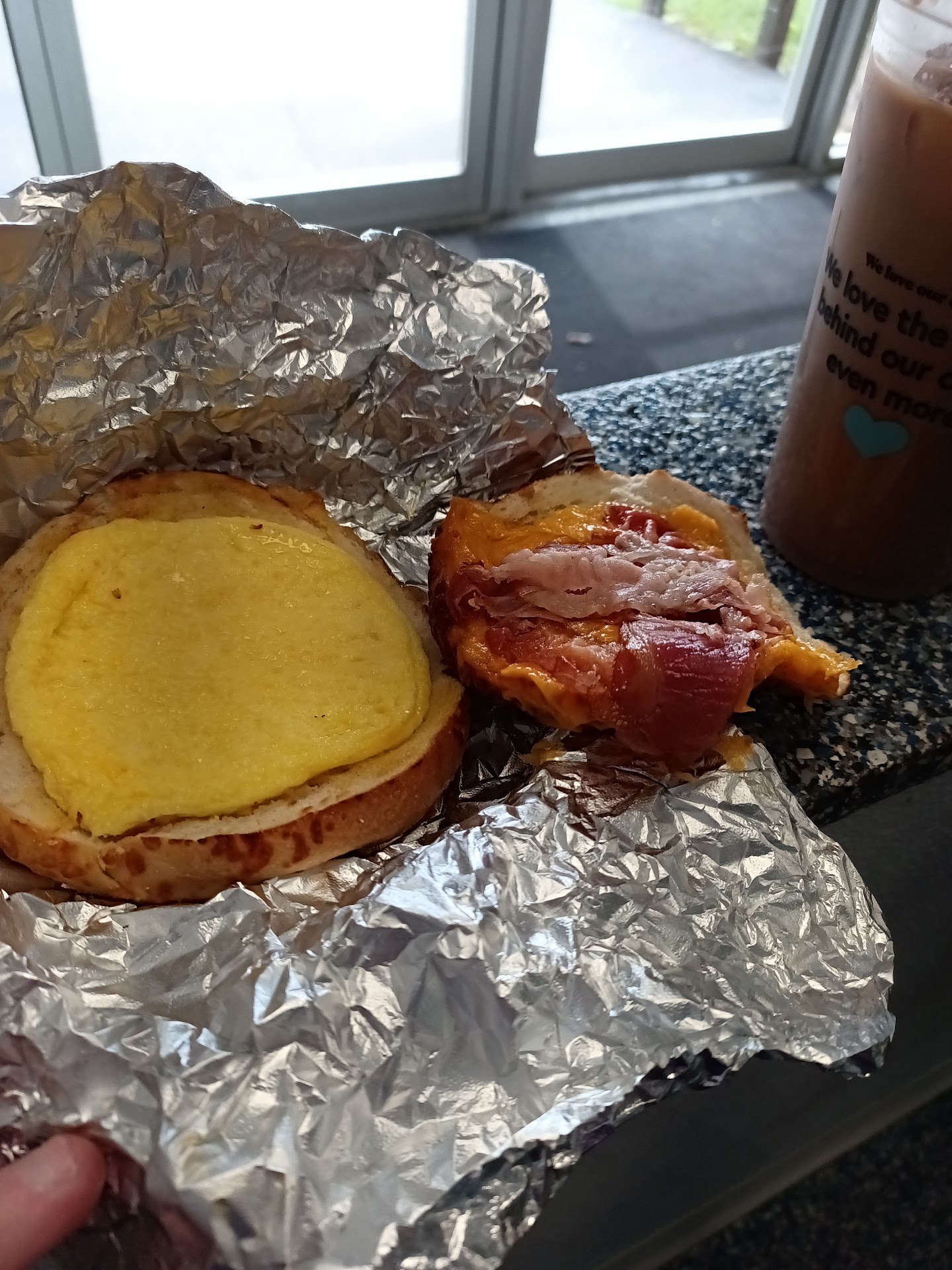Read moreHaven't been inside, just drive through a couple times. I bought my brother a cookies and cream drink and he loved it. I ordered an egg cheese bagel with the hash brown topped bagel with cream cheese on both sides with a strawberry type latte. The sandwich was steaming hot, had to wait a minute to bite! That was nice to have it the fresh! I wish it had more cream cheese on it though.. The strawberry latte didn't taste anything like strawberries and more like a coffee? Not sure if mine was mixed up with the person behind me or if it's supposed to taste like that? I'm not a coffee drinker so maybe I am wrong? It was over fifteen dollars for the sandwich and drink. Bit too pricey. I'd go back and try something else but not all the time cause I feel like I can get a bigger lunch for that price.
