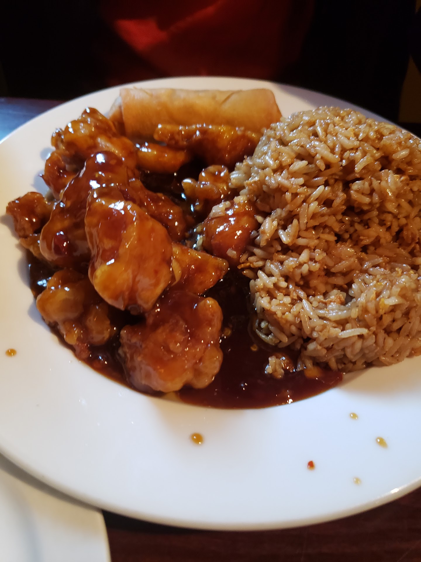The General Tsos chicken had one of the best sauces I've had. Great flavor, heat was mild, but the chicken was nice and crispy.