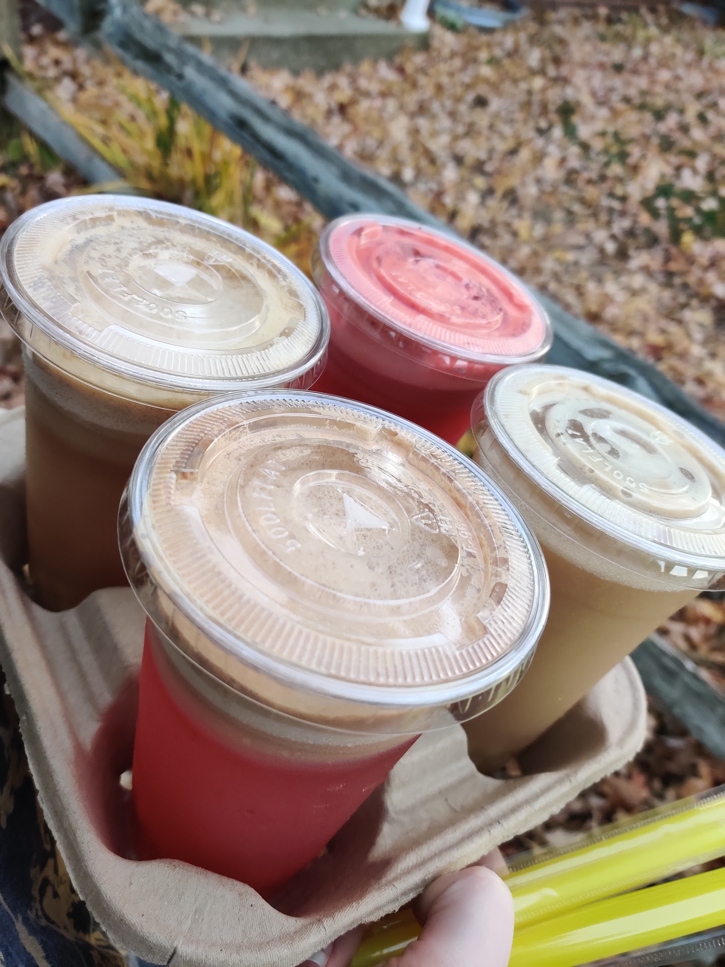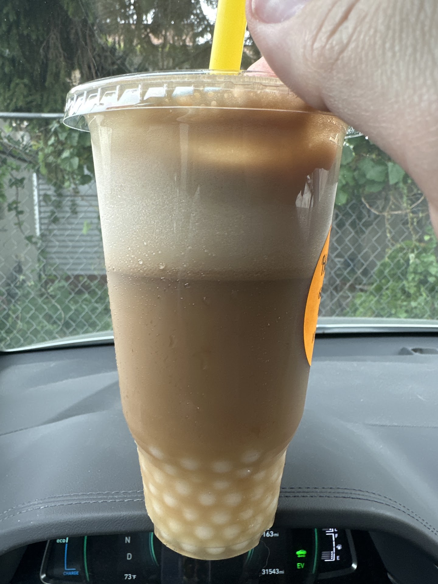 They don't serve typical bubble tea for sure. As other reviews mention, they do some sort of blending thing for the tea, probably with ice. I also noticed it sort of seemed to separate if I let it sit...? It tasted fine even with the odd look, though. They also don't seem have regular tapioca pearls from what I could gather from the website and in-cafe list.