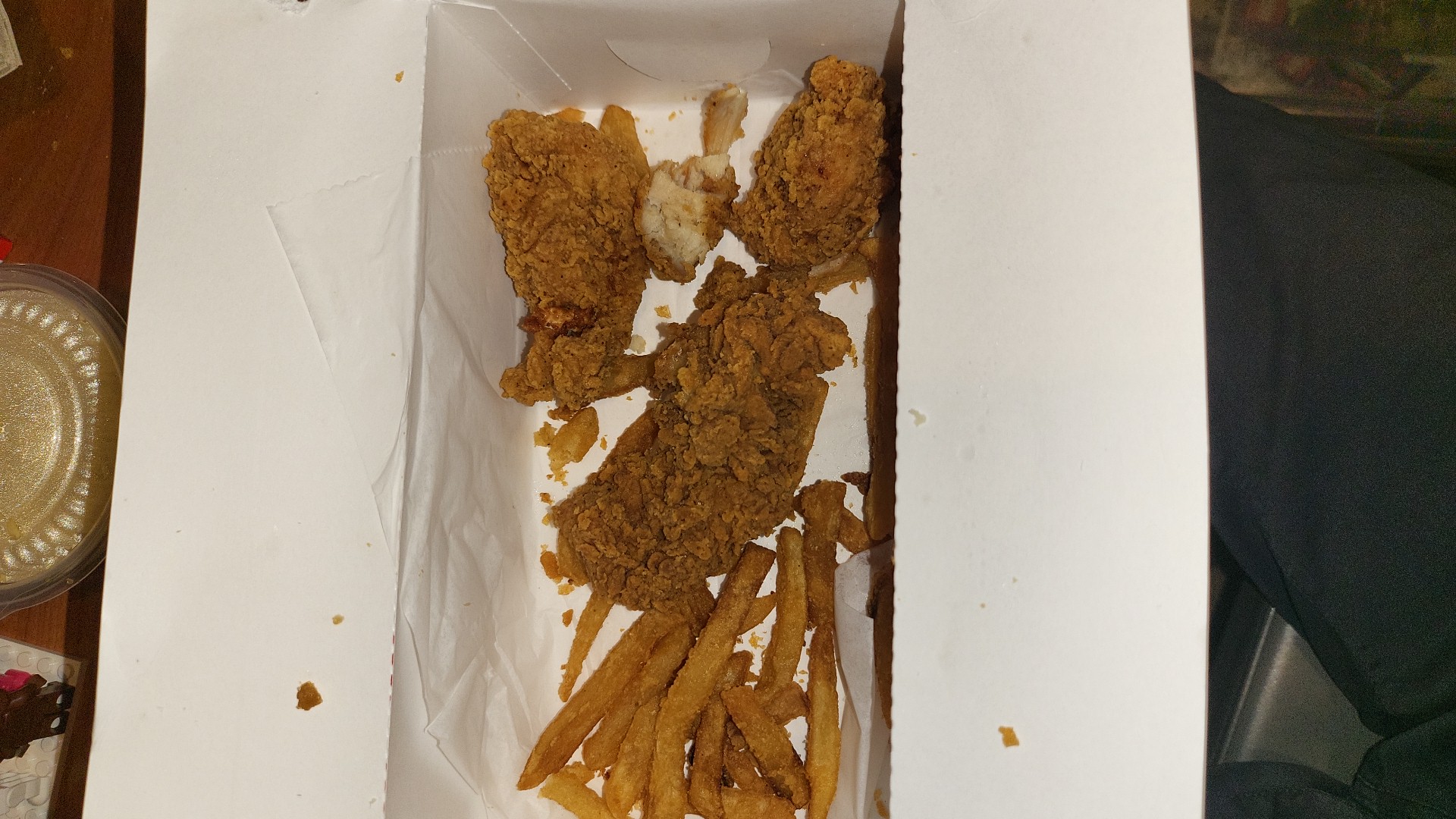 We went through the drive thru this eve around 4:30. The man that was taking our order sounded like he either just woke up or was high as a kite & talking very low & slow. Then we could hear a whole conversation between him & someone else -saying Tristan did you get that order is your mic turned on. They repeated our order correctly - but at the window they handed us 1 drink & said the total was $9. something. We knew that couldn’t be right - we ordered 2 drinks, 2 mashed potatoes & 2 chic sandwich. We tried to get the guys attention but he already ran the card- so then he had to charge us for the second meal. He asked if we would pull around front- and said he would bring the other drink out with our order .we waited out front for about 10 or 15 min- which led us to believe they were cooking our order fresh. While waiting a couple came out looking irritated and the woman said” that was bull shit” The guy brought our order but no drink. We checked the order & the bottom bun on one of them was hard as a brick! Hard to believe it was even made today. We went inside and Asked for our money back - they said can we get you something else. I said no you have lost my trust now - just want my money back. The one young guy - I assume Tristan - seemed confused - he said I didn’t make the sandwich , maybe today was his first day- IDK. A lady came out from the kitchen - she said the best thing they have is the chicken tenders & nuggets. She put the money back on my card. Then a man popped out of an office to the left & said “did we get you taken care of. We said we just got our money back. Then he tried to get us to take the Dr. peppers. Oh and we brought 1 Dr. pepper back in with the meals and they had fixed 2 more for us- that they were going to bring out to us. So there were 3 big cups of Dr. pepper sitting on the counter. They really wanted us to take those drinks. Back to the man that came out of the office - his eyes were so red & he looked a mess. Oh, and a woman came out of that office at the same time. She went strait to the back. No body was in charge - we watched a couple of men carry their orders back in. While eating at another restaurant in the same area- we saw the man that came out of the office - ( I assume he is the manager)he kept coming out the back door & sitting in his car. We have eaten here before & it was ok. We probably won’t be back. Hands down worst experience at a restaurant - low energy , no training, uninterested. I would shut this place down & start over. colonel Sanders would be rolling over...