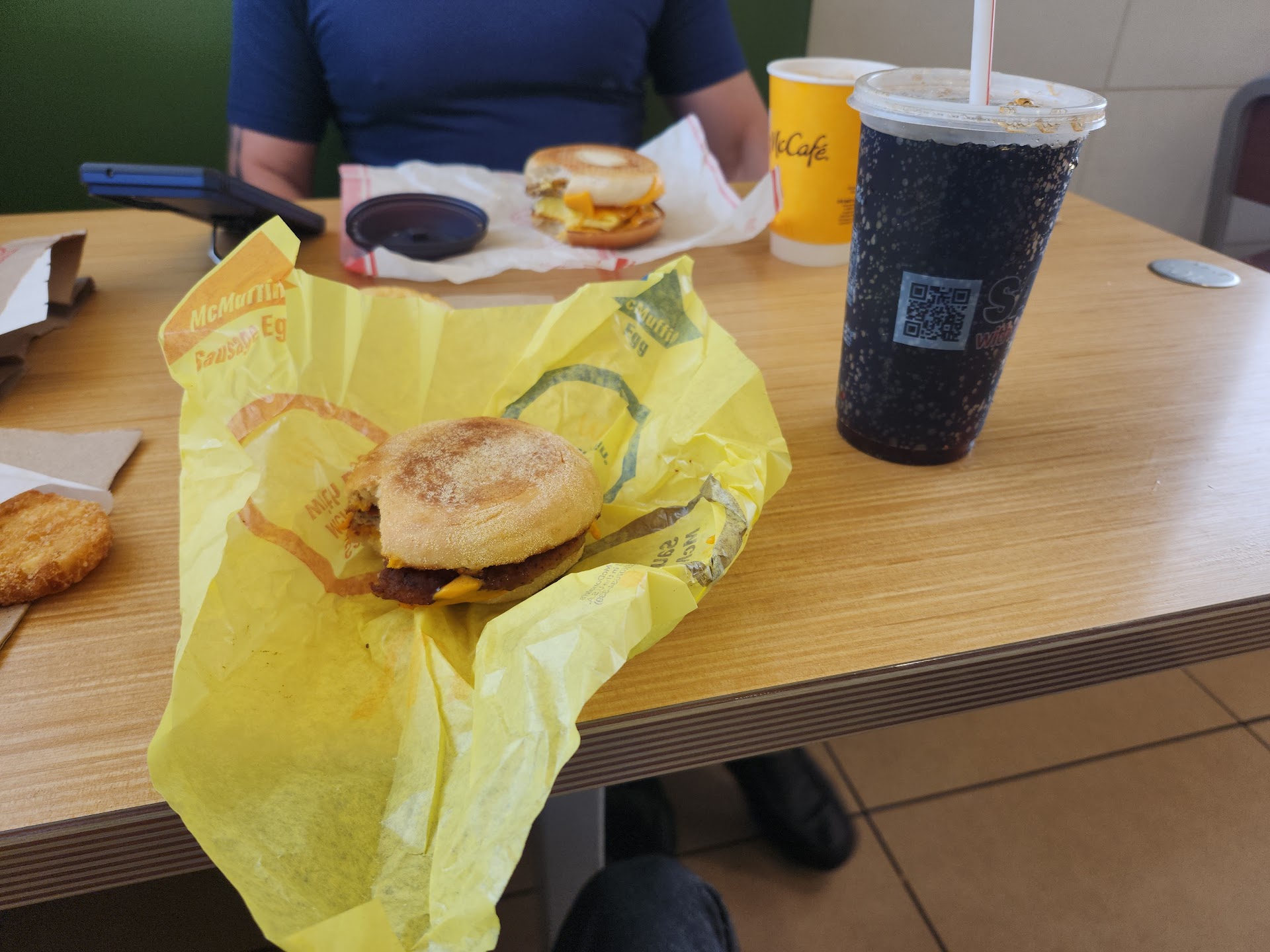 Read moreService was a little slow, seemed they focused more on pushing their drive through orders out quicker than the counter. BUT they did put EXTRA sauce when we asked for it on our bagel meals, most mcdonald's anymore even with the upcharge and saying that we want extra they never do it, so thank you for putting the EXTRA sauce on. We don't mind how messy they are lol. The dining room for breakfast service was fairly clean. I would say to have someone on counter, when we came in there was a line of like 5 people (which we used the electronic POS system), but if we didn't want to use that system we would have waited in a long line waiting for someone to come up and take the orders, since she was taking the orders and then going and serving the orders as well. When it's busy you've got to keep someone on counter at all times to avoid a line almost out the door. Smaller store which isn't a bad thing. Drive through set up is weird, if someone isn't paying attention whether walking across or the driver, I would be nervous of someone getting hit. We did wait about 10 mins for our food order, but we are patient and waited, others however weren't that were...