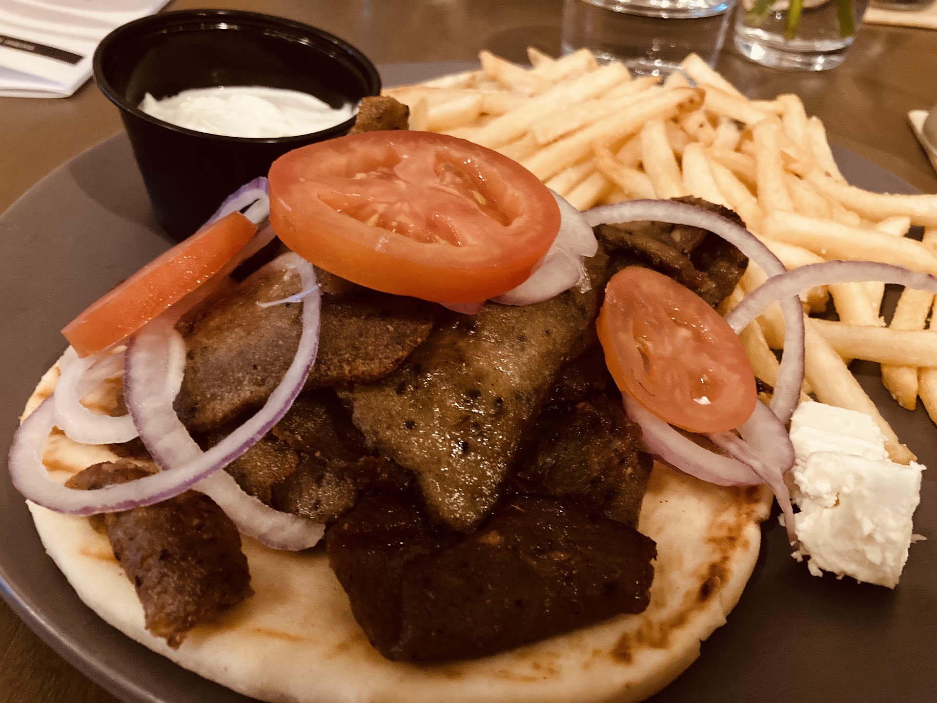 Read more1st time, we went in for their wood fired pizza and to try the new place out. We were pleasantly surprised at their extensive drink and wine menu, we ordered 2 of their signature drinks and both were served perfectly. Nice presentation! Next we ordered the saganaki as an app and 2 speciality pizzas. The app came, nice fire presentation as it should be. The pizzas came and were great, fresh ingredients and made with care. We took about 1/2 the pizzas home as they are very rich. We are locals and will be back, if you’re looking for a quality real wood fired pizza, you should try them out. One note: adults only as it is a small place and no room for family dining. They do...