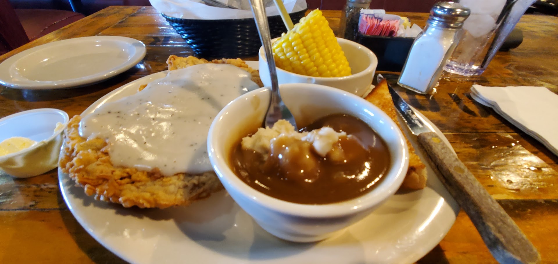 I was driving by this restaurant and the outside caught my attention. Pure Texas. Looked very promising, cool, and when I think about it now, very touristy. It worked, I turned around and decided to give it a try. I should have realized that the parking lot being empty during what is normally lunch time for most restaurants, (1pm), on a Saturday afternoon would indicate that looks can be deceiving. The owners have put a lot of money into this place. They have cattle statues outside to greet you, a large porch, a live music patio and even a playground for kids. Really pleasing to the eyes. The inside is full of Texas murals on the walls and cool taxidermy. Texas Western style. But the food was nothing like I expected. I was very disappointed. They give you a basket of mini cornbread muffins and butter which looked really yummy and southern for sure, but tasteless. Not even a tinge of sweet. Most folks in Texas ( not all but most) prefer sweet cornbread. These reminded me of dried up sawdust with egg batter. I ordered the chicken fried steak with mashed potatoes and corn on the cob. The corn was pretty bleh, the mashed potatoes were mid at best. The chicken fried steak was good compared to everything else. This had some flavor in the meat AND in the breading. So it wasn't a complete bust. I don't even like country music, but this place has a vibe and the music they were playing in the background killed the vibe altogether. Oldies classic rock like the Beatles don't fit this atmosphere they at all. Johnny Cash, Merle Haggard, Vince Gill or some 90's country playing in the background would make sense when there isn't a live band playing. The music they had was adding to the disappointment considering I thought this place would be đ„. Lastly, they really need to replace some of the cushions in their booths. Busted up, flattened cushions need to go. My waitress was great and attentive. This place could be amazing if they worked on their recipes and added some real southern flavor, fixed the background music and repalced the...