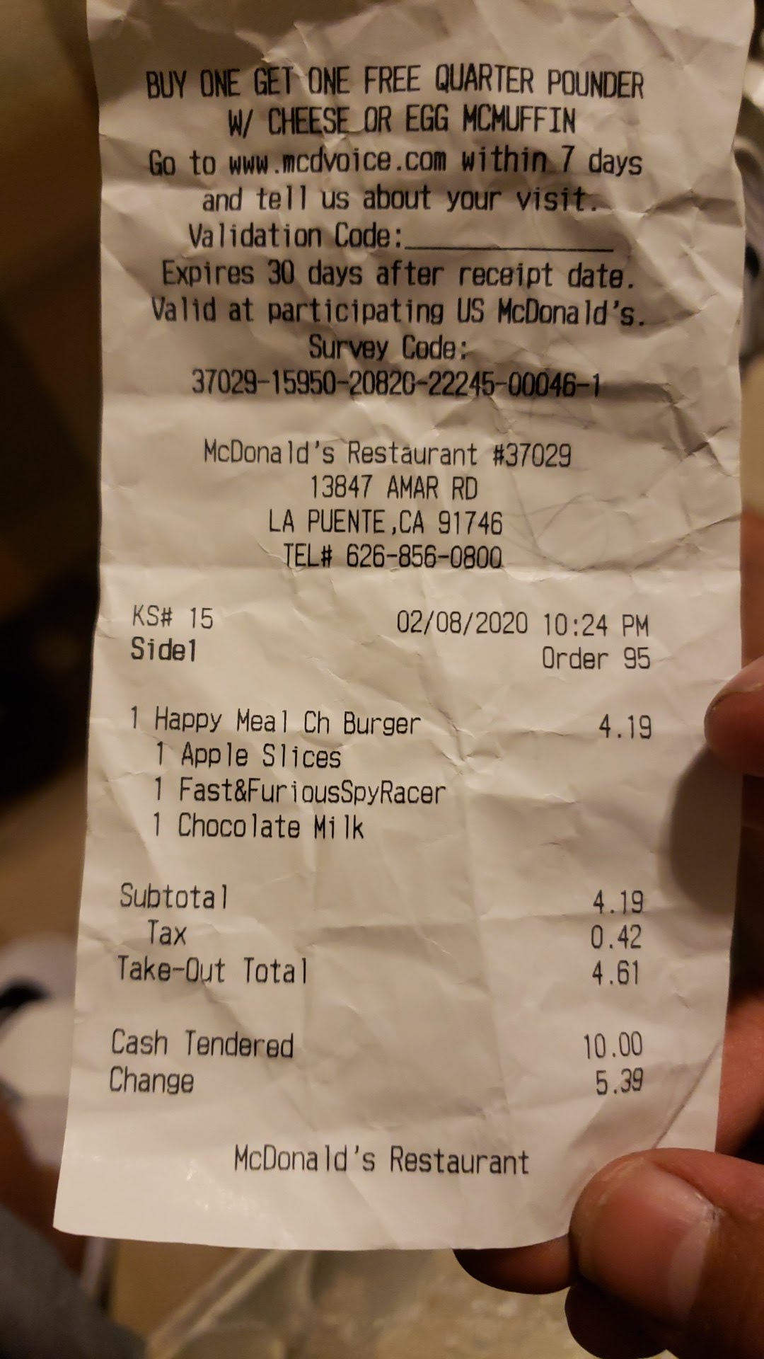 Made an app order here on 8/10/25, went to pick it up, had to ask in speaker if someone was there, finally a voice came through after a minute ot two, gave him mu id from my phone, he then said pull to window, went to window 1, mo one there, waited two or so minutes, no one ever showed, went to window 2 and the girl looked at me like what are you doing here, I told her I had an app order, she looked confused and ask me my name, said ok and walked off, never saw her again, after a couple minutes a guy walked up to the window and ask me what I needed, I told him, he looked confused too, left the window for a minute, came back with an open sack, and handed it to me, I asked for my receipt and he said he didn''t have it, I finally got angry and asked for the manager, he told me to go to window 3, I drove up to it and waited 2-3 minutes, finally hopnked my horn 3 different times and finally a girl came up, said she was manager , I asked for receipt, she told me to hold on, after a minute or two she came back wtih a duplicate receipt and handed it to me, I ask if everyone was on a break there and she just looked at me, never said sorry for your wait or amything, after makeing a com plaint I got a call foe a Sal from McDonalds and he basically said some people show up way late to pick up their order, basically said "it happens" sorry amd "I will look more into this" HA! I see the customer is the one who is wrong, way to go Mcdonalds, you're a good amd understanding...