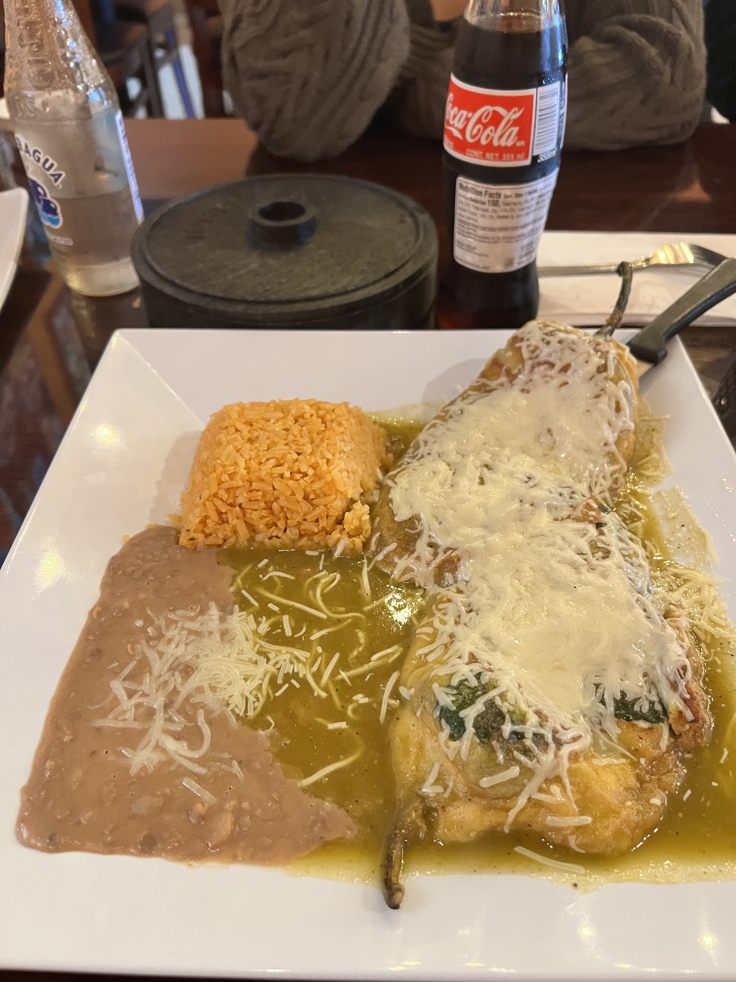 when we walked in it was empty but it was clean and pleasant the waitress/hostess was super friendly and provided GREAT service. 3 of us ordered Horchata mine tasted a little sour but everyone else said that they didn't taste it and it was fine so IDK unfortunately we all ordered pretty much the same thing but none of us were really impressed with the food the meat tasted like it came out of a can the chips tasted either stale or like they were cooked in old oil the enchiladas were similar to a tv dinner. all in all we weren't impressed.