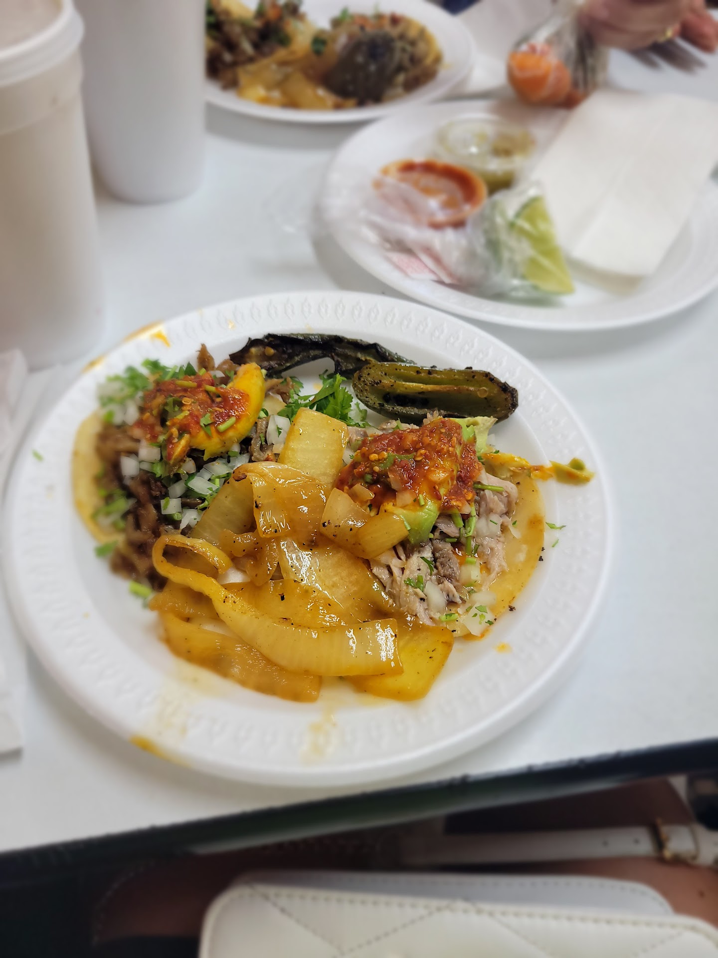 Read moreThis place has the most bomb food, it reminds me of eating fast Mexican food before the swapmeet trips on a Sunday. Super nostalgic over this food, no lie. Yesterday I purchased a carnitas burrito, and the tortilla is similar to the homemade flour tortillas in texture. Flavor was amazing, just added some salsa verde to my taste, and bombdotcom!! They serve your food when ordering tacos/burritos with grilled onions, chiles toreados, and the salsa of your liking.