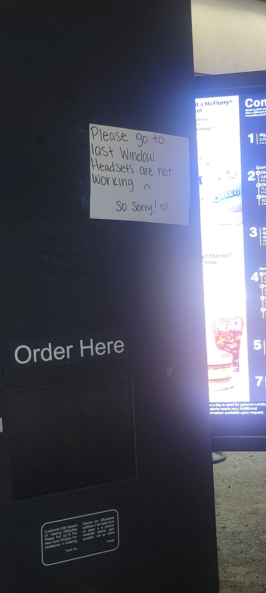 The last 3 times the orders have been cold or missing salt on the fries, and each order has had the order wrong. Then when asking the employee for the missing items- there was eye rolling, stomping around, and heavy breathing.