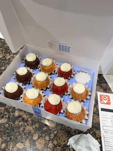 Cute little bakery. I was serviced within 8 minutes in and out of the store. Free surface parking lot. I got an assortment of 12 bundtinis for $33 with mixed flavors and one big bundt cake for a few travel PTs leaving my office location. Total bill was $36. If you want a special card message made with the box it would be 0.50 cents more. I was actually blown away with the taste and moistness of the cakes. My favorite flavor is by far the strawberry and cream. Friendly helpful staff. If you want to make any custom box orders then you must order in advance and they do answer the phones here to do so. Pro tip eisenhower employees get a discount but unless you flash your badge in front of their face they want tell you about it or recognize even with my...