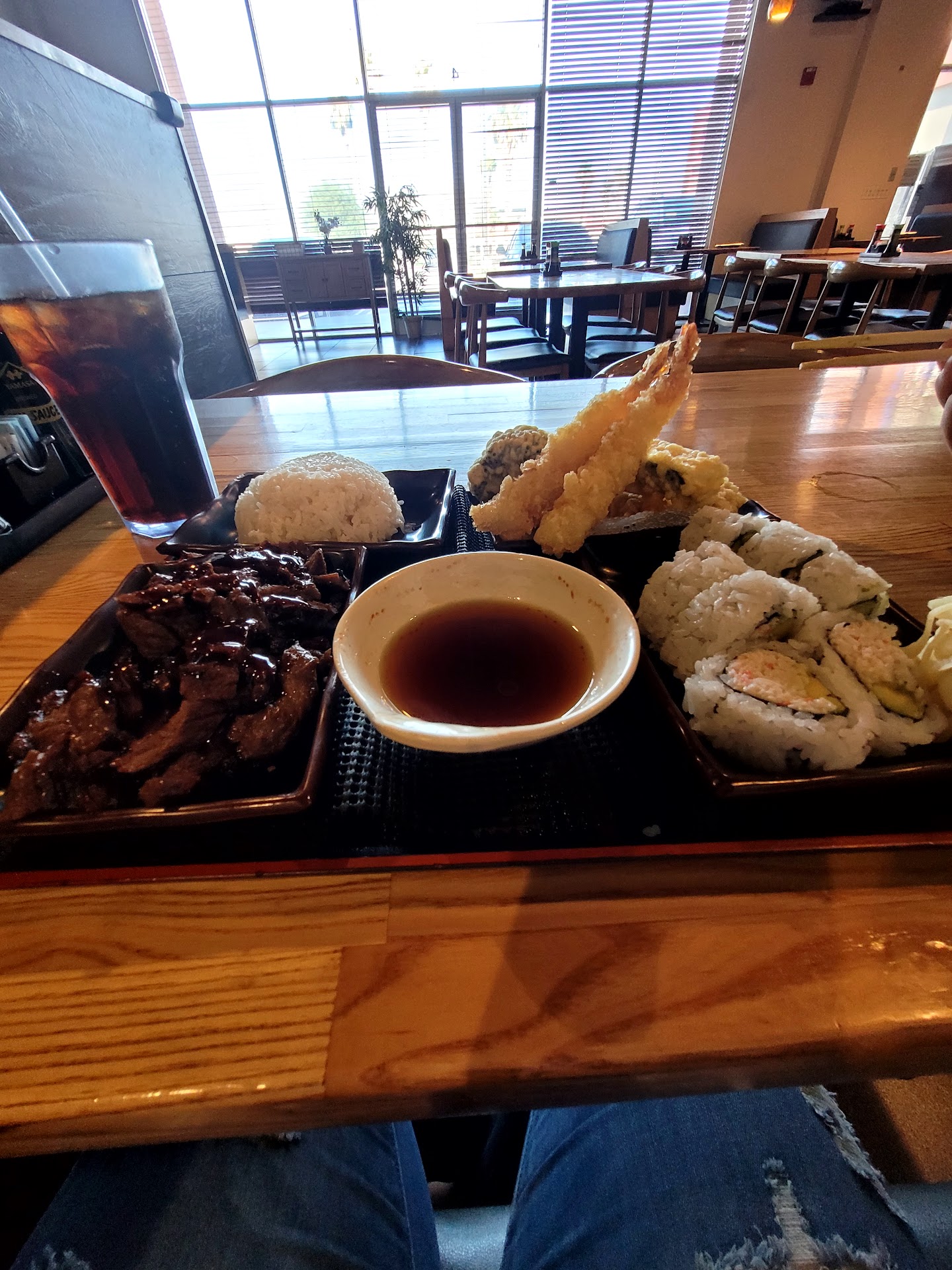 Service was awesome, and our waiter had zero issues taking our order. Our food was made correctly to our order. I had the 3 dinner special with pork katsu, teriyaki chicken, and veggie tempura. My platter was on point and very appetizing. The pork had a fried breading and soy sauce based glaze. The tempura was yummy and came with several types of veggies (brocolli, green beans, asparugus, potato, squash, and carrot), and the chicken teriyaki was of great quality white meat. My only suggestion would be for the white rice. The texture on the exterior rice ball was hard, or maybe it just went stale, because it wasn't as sticky or fluffy as I've had at other sushi restaurants.