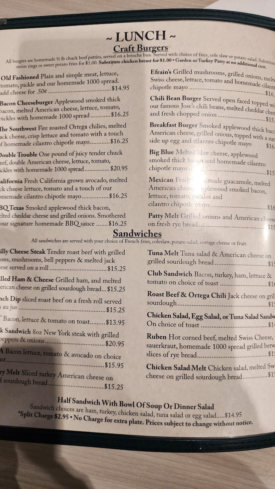 Gosh I'm so confused with this. Reviews are great but wow was this place a miss on most fronts. Everything was fine, even when they placed my "Efrain burger" in front of me I was excited, I mean look at the photo!. That's when things took a turn for the worst. I'll back up and mention that the server never asked how I wanted my burger prepared , which to me personally is typically a great sign. I always answer with "Whatever the chef prefers" anyway. Whelp, the burger was basically burned. Quality of the meat did taste fresh outside of being way way over cooked (yes, 2 ways is justifiable here). The brioche bun was stale, yes stale. I'm not being a princess here but at the price point of 12.95 the bun being stale is a huge let down. Not to mention all typical diner ordered condiments which I'm not really complaining about but okay, we have all tasted these pickles before and absolutely take away from any unique flavors like the cilantro chipotle mayo (which was a determining factor in my ordering of this burger). Nope, the entire burger tasted of stale bun, burnt meat, and the same (insert food vendor name here) pickles. I'm sorry it seems like I'm beating the place up but this was absolutely what happened here. What's more, it took me flagging down someone in order to get an extra side of the cilantro chipotle mayo, the waiter actually sat down my check at that same time. At this point I was halfway through the burger and was never once asked how everything was or if I needed anything, nope, straight to "here's your check now so get out". Obviouslt I'm being dramatic with my words but that is exactly what happened. The fries, looked great but needed to be in the fryer a bit longer. Soggy for the most part. Anyway, what a sad sad place that suffers from mediocrity and a lack of caring. Based on the previous reviews I was under the impression this would be a place with a chef or chefs that cared about what they serve, I was strongly mistaken. If you want a very common place diner meal, by all means eat here. Otherwise there are a plethora of far superior options at even a couple of bucks less. Would like to try their...