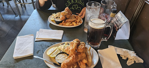 Read moreWent here for St. PATRICK'S DAY looking to have a beer and some fish 🐟 and chips with the wife. Place was crowed and quite festive ☘️. Service was slow with the beer as demand was high and the servers and bar staff were frantically filling orders for 🍺 folks who were chugging away the green beer and other mixed drinks as fast as they were presented to the patrons. Patience was key and the bar and wait staff are 🏆 Champs for working so hard on a Sunday St PADDY'S day. Beer and alcohol service for that day was also available outside on the patio. Enjoyed a cold one streetside with other friendly folks waiting to get a table. Once we were seated the wait staff was fast and polite. Drink order came around fast and surprisingly the food was just as fast too. I highly recommend this place for the fish and chips. Great batter, comes out crisp and light, good tarter sauce and their coleslaw is just the way I like it. Better yet they have one of my favorite Irish Cream Ales on hand Killkenny. Great Red Ale which is always on tap here throughout the year...Definitely coming back. My wife had ordered the same food dish and big thumbs up from her too...she doesn't drink alcohol so she ordered a Shirley Temple to which they served in a large beer 🍺 mug which made her happy too. Would absolutely recommend this place as there is a great bar and restaurant atmosphere and setting in this quaint downtown setting of La Verne. A shout out to manager Anthony who was serving beer on the pation and showing great hospitality to...