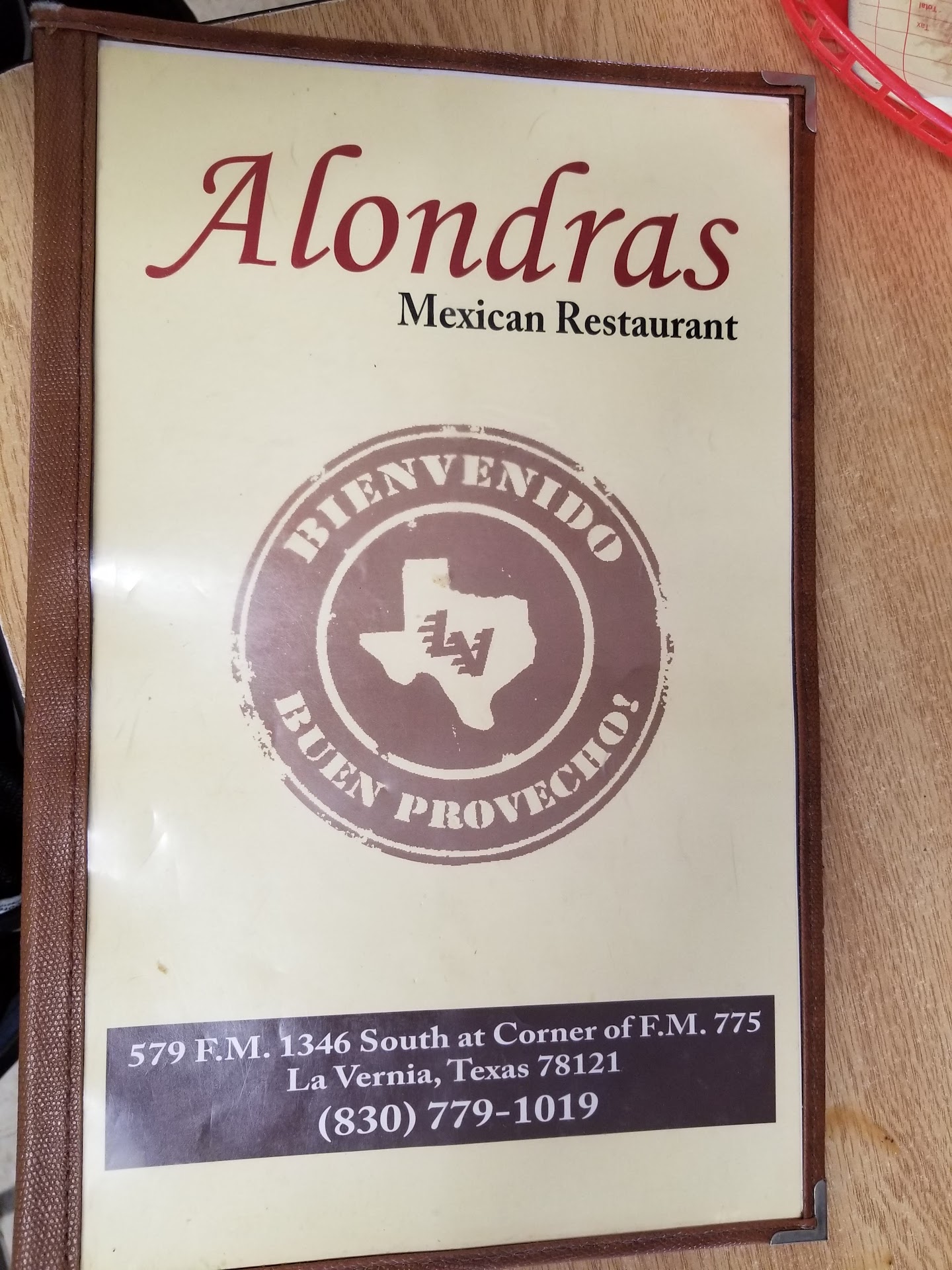 Read moreGreat breakfast location so four stars for Alondras Mexican Restaurant in La Vernia TX. Located on the south west side of town. Very tasty fair. On a July 2019 morning visit had the huevos rancheros with ranchero sauce on the side and also had the huevo a la Mexicana. Both were great tasting and cooked to order perfectly. The ranchero sauce was very good and something I’ll go back for. The service staff did everything right, making sure our order was taken in a timely manner and getting drinks and refills as needed without having to ask. They were very attentive during our visit. The location is easy to get to and getting inside has easy access. The locals that were there during our visit made for some good people watching and all were friendly. This is a family friendly place and we saw several. Alondras Mexican Restaurant’s menu was clear and easy to read and had a lot of options for all meal times offered. They have a drive through that was busy the whole time we were there. Hours are generally 6am to 3pm daily and closed on Friday (from the google search – did not catch this detail while there). Only less than great thing was the men's restroom could of used some attention but was manageable. If you make it to La Vernia and are looking for a better than average local meal, this is one of the places I’d keep...