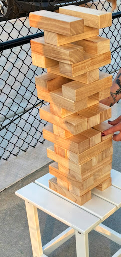 We got to play some of their games since they were so busy tonight, we really enjoyed the bigger version of Jenga, and the Axe throwing. Even though the Axe throwing was busy, games went by fairly quickly and they were able to get a lot of people rotated in and out quickly.
