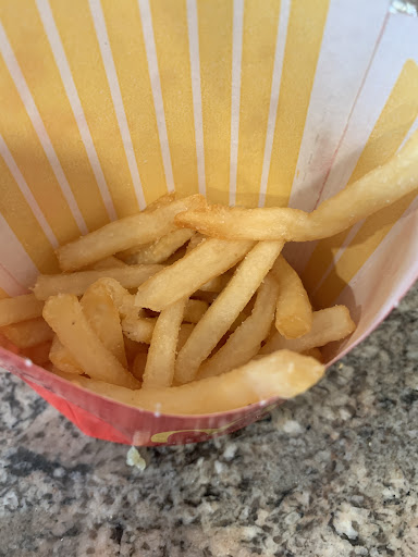 No line in the drive thru at all but had to wait almost 5 minutes for someone to speak. They had me pull up because there were no fries. Another 5 minutes goes by. I received cold mushy fries, milkshake that was suppose to be chocolate but looked completely vanilla. I asked the girl at the window and she says that’s what the machine does for chocolate shake. After waiting 5 minutes for my food, I get my ten piece nugget ( which is for my 7 year old) and drive home. I open it up at home and there is only 7 chicken nuggets that we’re micro small. Thanks for the hard work !i will be coming back for a refund. 10$ meal !