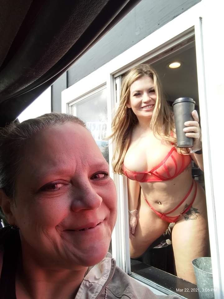 As a lady and mother, I could care less what she's wearing when picking up my morning drink after getting done dropping kids off at their schools.