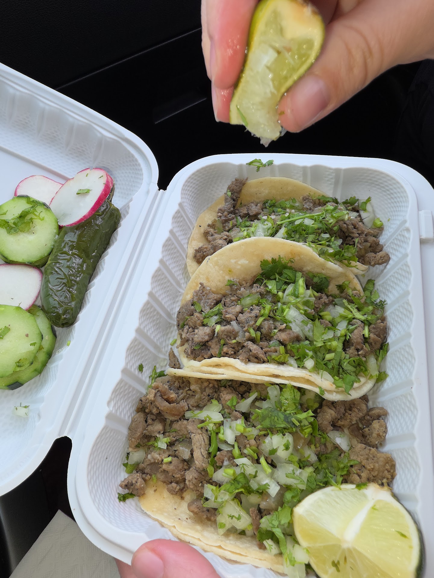 These marinated pork tacos are straight-up criminal because thereās no way food this good should cost just $9. I mean, look at this plate: three thick tacos piled with juicy pork, onions, cilantro, and enough garnish to start a salad bar. They even threw in a whole jalapeƱo like itās no big deal. The salsa? Spicy enough to make you question your life choices in the best way. The lime wedges came in clutch like the hype crew for each bite. And the cucumbers? I didnāt ask for a spa day, but they delivered anyway. If you're hungry, broke, or just love flavor explosions, RUN donāt walk. These tacos owe me nothing⦠except...