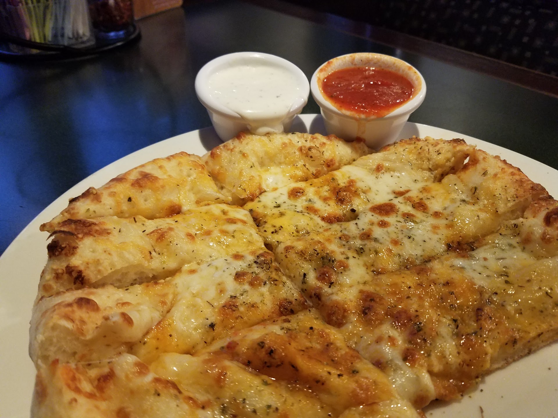 When I first entered this establishment I was not expecting all that much. Its not in the ritziest of locations and the restaurant itself isnt the fanciest. It appears typical mom and pop style pizza place but with a comfy cafe feel. The bar side has a dull hum of patrons having a good time whilst the restaurant side is a calmer atmosphere. Our waiter, Tyler, immediately greeted us with a smile and cheerful demeanor and promptly got our drinks. Little did I know this man was the conductor on a roller coaster that I unwittingly boarded. Looking at the prices on the menu was a shock at first, the appetizers cost about the same price as the main course. $11 for wings or nachos. It seemed quite steep but I thought im already here and have not had the food before so I should try it out and let others know how it is. I am SO GLAD that I stayed. For the appetizer I asked how hot the spicy tangy wings were and Tyler did not respond with some generic "They are kinda spicy" or, "Mildish", Instead he opted to give me a full rundown of the spice, what they were sauced with and the dipping that came with and why. He knew the food in and out and when I took my first bite the roller coaster dropped. These wings were very mild but still had a kick afterwards. The honey mustard on them was powerful but not overpowering. It instead paved the way for the spice to hit you just at the right moment. Extremely satisfied with these I patiently awaited my pizza. It took slightly longer than average times to deliver but after my first bite I was shown why. It is by far the freshest pizza i've had to date. I had ordered the bacon chicken ranch expecting a papa johns style hodgepodge of ingredients slapped on some rubber and was pleasantly proven wrong.The crust, which I normally dont/cant eat, (Due to a fossilized nature), was not only soft but perhaps one of my favorite parts. The pizza was cooked as just a cheese, bacon, chicken, garlic, and ranch-esque sauce pizza. Basil and Tomatoes were added after so they tasted right off the plant fresh. Now this sounds like quite a few things going on in this pizza but I was able to taste Every.Single.Part of this pizza. The basil had a strong aroma when smelled instead of a faint smell, when consumed the punch of it teetered on criminal yet did not linger. Afterwards the bacon and garlic came through to send you for a loop with the chicken easing you down off the corkscrew whirl from this roller coaster. Each bit saw me nearing the limits of my eating but I just had to finish. The last bite was bittersweet. I experienced a pizza like none other, yet my experience was done...for the night. Upon collecting our plates our waiter did not try and force dessert upon us, like so many other places, but instead oped to ask us if we wanted the check or dessert. He cheerfully obliged us in gathering our check without argument or push to try some random chocolate filled cake. The price may have looked a bit steep on paper but for the quality of food I got it felt as thought they were just using the restaurant as a front to fuel there passion for creating delicious art.