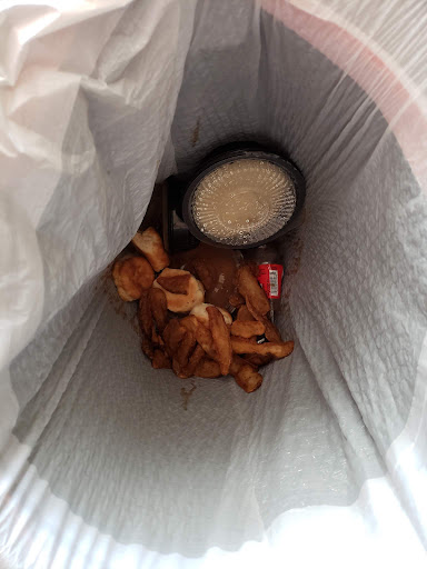 When we got the giant bag home and started pulling things out, the paper bag with gravy in it had been leaking and the bottom of the bag broke open over the whole bag, the gravy container just dropped straight through the bottom of the paper bag! And splattered all over our counter, my favorite brand new cream colored sweater, and all over my floor!