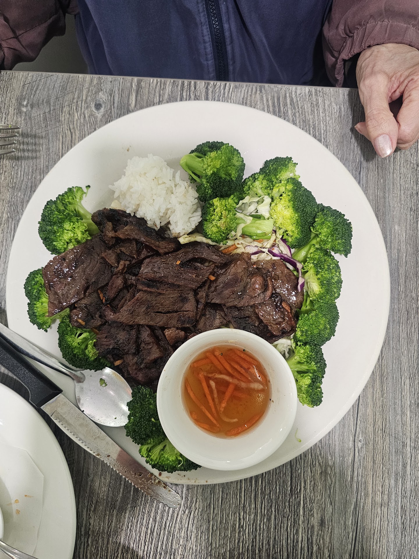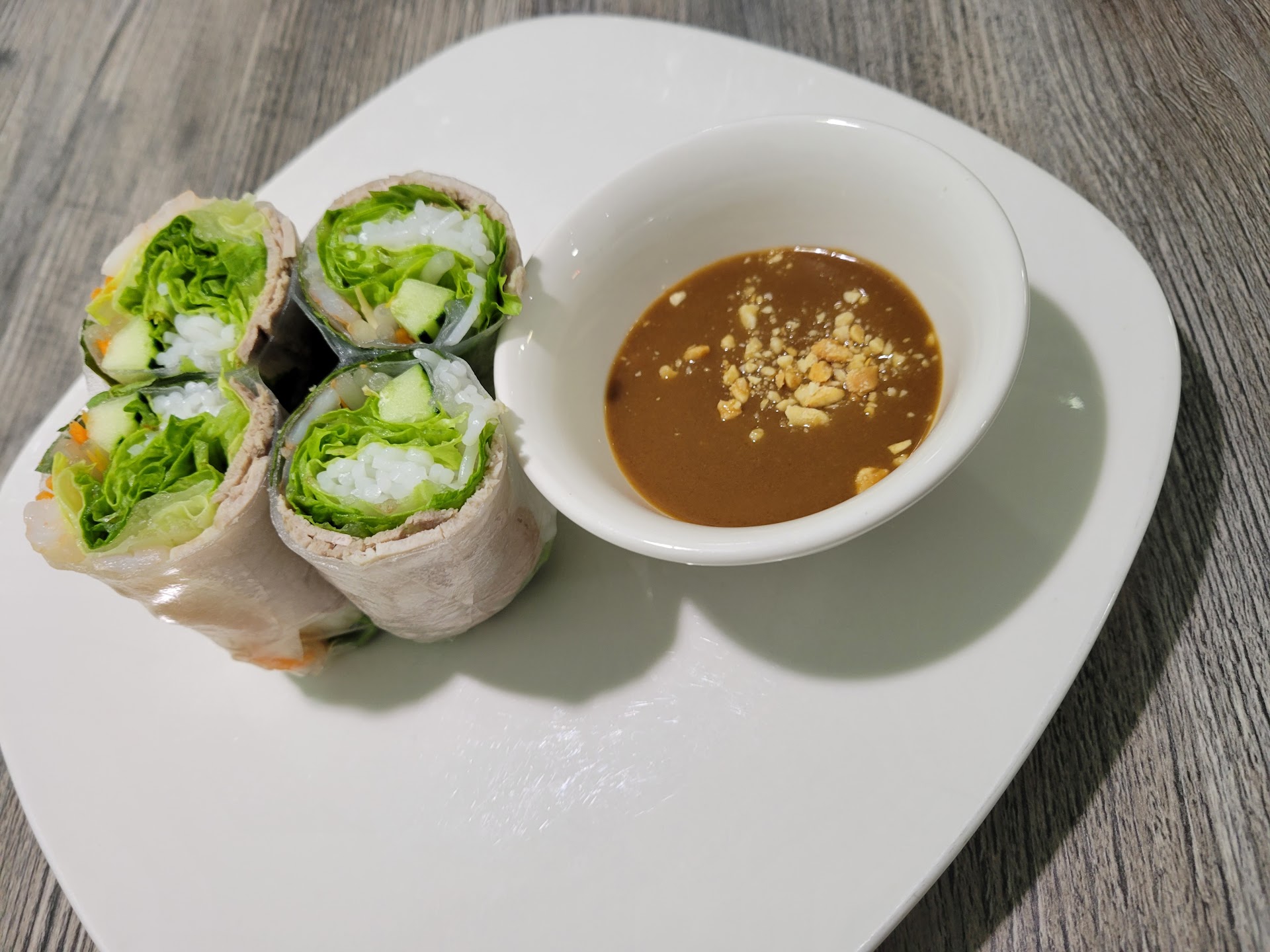 Read moreSome of best Asian food we've ever had. Don't let the strip mall facade fool you. The setting is quaint with nice cushiony booth seating available. We started with appetizers of "Vietnamese Spring Rolls" (2-2" thick x 6" long rolls cut in half) for $8. These were huge and delicious, filled with pork and prawns. We also had a second appetizer of "Egg Rolls" with the chicken option, which appeared to be made in-house, and were scrumptious (4 for $8) For the entrée's, I ordered the "Almond Asian Fusion Chicken", served on an oversized plate which the huge panko breaded chicken breast covered from edge to edge. The breast came topped with an unobtrusive layer of orange/almond gravy with a side dish of more gravy, giving a choice of how much gravy to use. The vegetables comprised of steamed cabbage and carrots were cooked perfectly aldente', all for the bargain price of $19.95. My friend had the "Lime Leaf Special Beef" again served on an oversized plate and comprised of a very generous portion of braised top sirloin coated in a special sweet sauce with spicyness of your choice, and a generous side of steamed vegetables. When my friend had questions about this dish and the possibility of substitutions, the chef was so accommodating. She came out and personally described the contents and substitution options, promising to make the dish to my friends liking until it was just right. No correction was necessary. Again, all for the extremely reasonable price of $20.85. All told our food bill came to $56.80 and had enough leftovers to cover dinner for days to come. We highly recommend this place and will come back often. Thank-you "Lime Leaf" for a great...